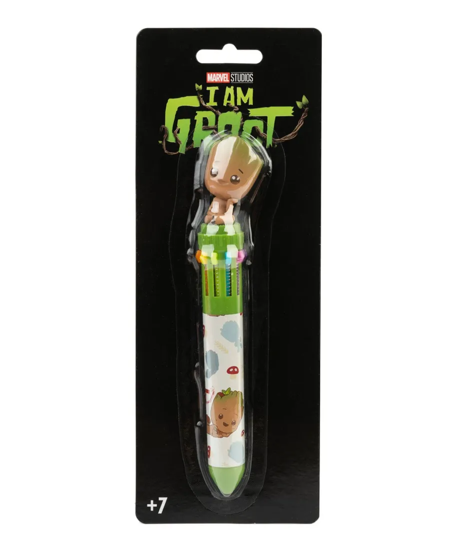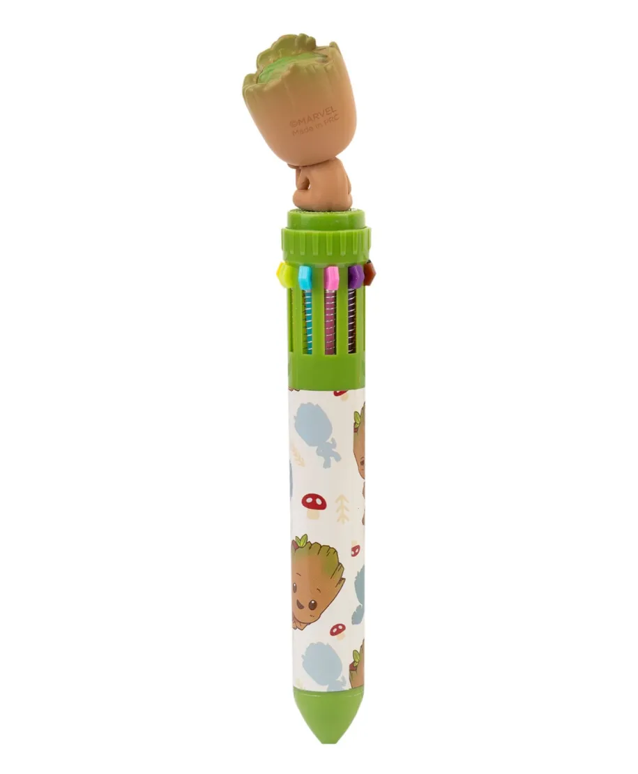 Wielokolorowy długopis Marvel Groot Automatyczny długopis wielokolorowy. Posiada 10 wkładów, m. in.: czarny, fioletowy, niebieski, czerwony, pomarańczowy i zielony. Idealny dla dzieci i młodzieży. Świetny pomysł na podarunek! Zestaw posiada oficjalną licencję producenta. Szczegóły techniczne: Marka: Grupoerik Wymiary opakowania:21 x 3 x 9 cm