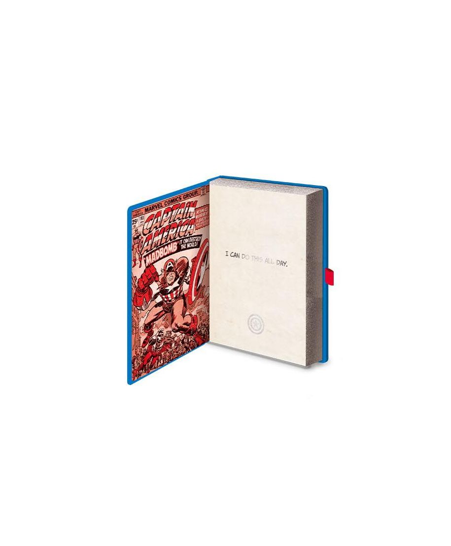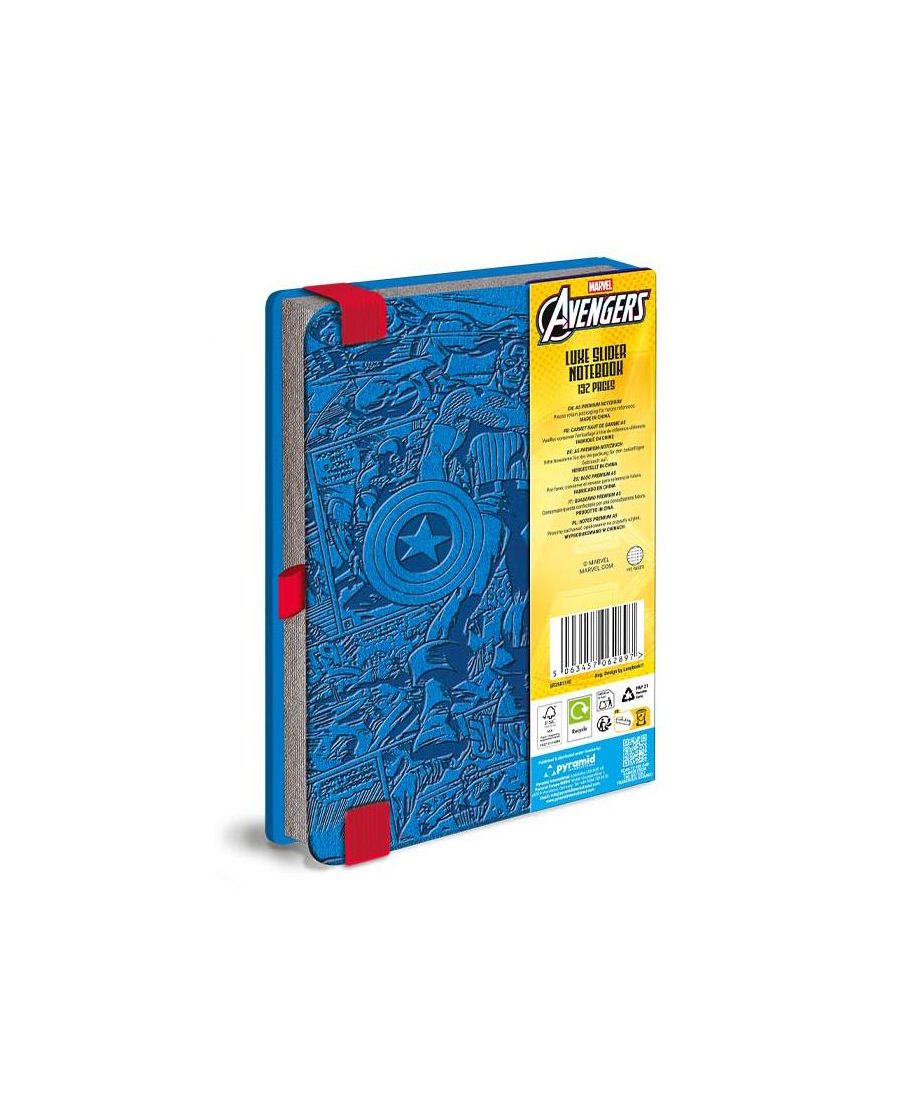 Notes A5 Marvel Kapitan Ameryka Numer katalogowy: SR2501140 Producent: Pyramid International Wymiary: 14,8x21 cm Waga: 0,385 kg Praktyczny notes A5 z motywem Kapitana Ameryki łączy komiksowy styl z dopracowanym wykończeniem. Twarda okładka nawiązuje do kadrów z uniwersum Marvela, a elastyczna opaska z emblematem tarczy pomaga utrzymać notes bezpiecznie zamknięty w torbie. Złocone krawędzie kartek dodają elegancji, a dwie wstążki-zakładki ułatwiają szybkie odnajdywanie kluczowych stron. W środku znajduje się 192 stron do codziennych notatek, planowania i zapisywania pomysłów. Szczegóły techniczne: 192 strony twarda okładka elastyczna opaska z emblematem 2 wstążki-zakładki złocone krawędzie kartek Oryginalny produkt na oficjalnej licencji Marvel.