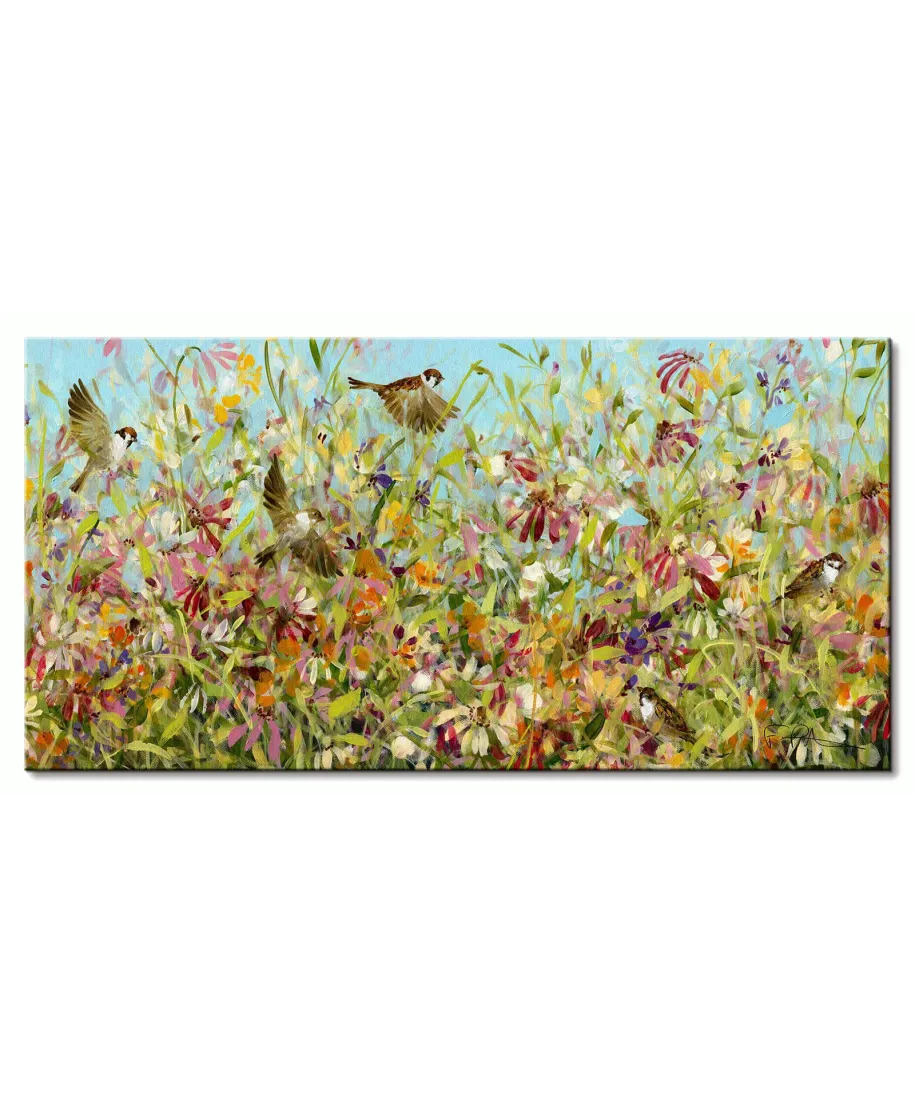 Meadow Sparrows - obraz na płótnie Oryginalny i licencjonowany obraz na płótnie idealny na każdą ścianę. Nasze obrazy wyróżniają: Fantastyczne barwy Wysokie nasycenie barw i ostrość, kolory utrzymują się przez długie lata. Płótno wysokiej jakości Płótno bawełniane 300g/m2 jest trwałe i mocne, jego struktura jest naturalna. Trwałe kolory, Dodatkowo lakierowana powierzchnia sprawia, że kolory są żywe przez dziesięciolecia. Solidna rama, Wykonana jest z naturalnego, sosnowego drewna, jest mocna i gruba a obraz solidny i wytrzymały. Zadrukowane boki, obrazy posiadają zadrukowane boki, nie potrzebują żadnej dodatkowej oprawy. Szczegóły techniczne: wydruk na płótnie bawełnianym 300g/m2 sosnowe krosna o grubości 2 cm i szerokości 3,5 cm druk cyfrowy