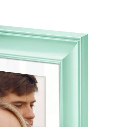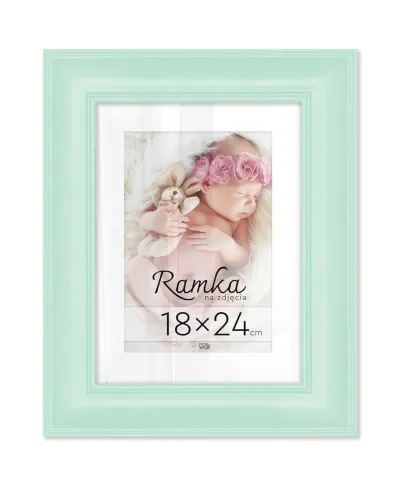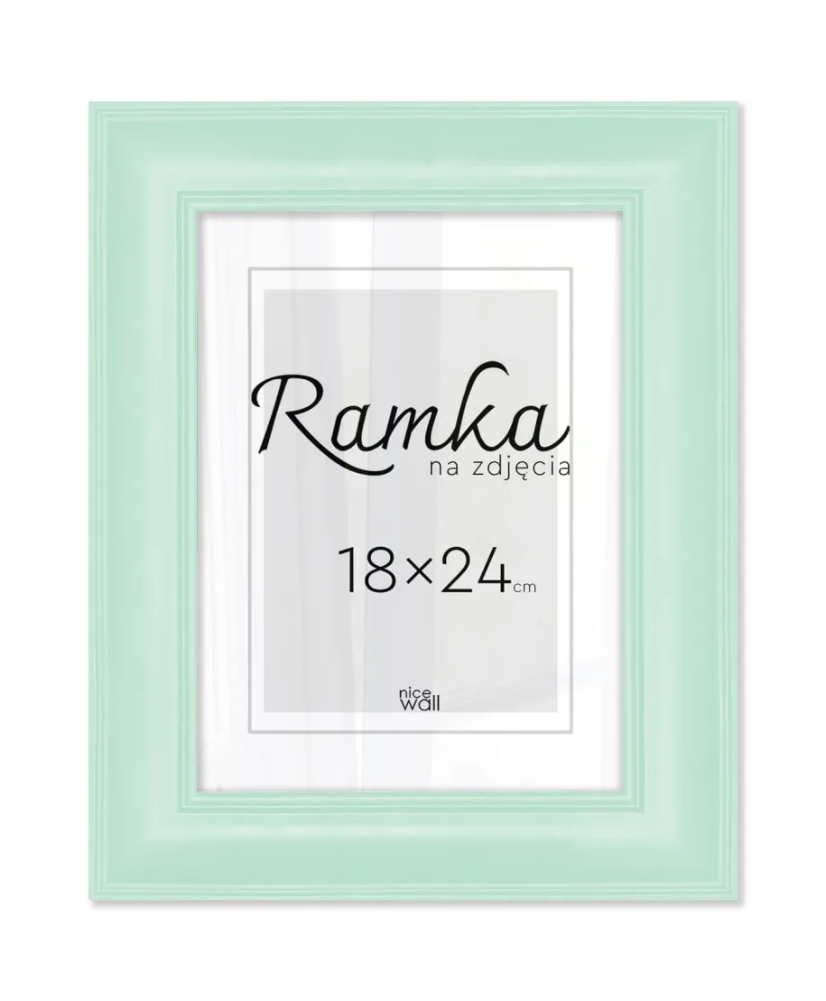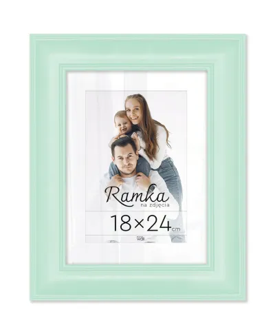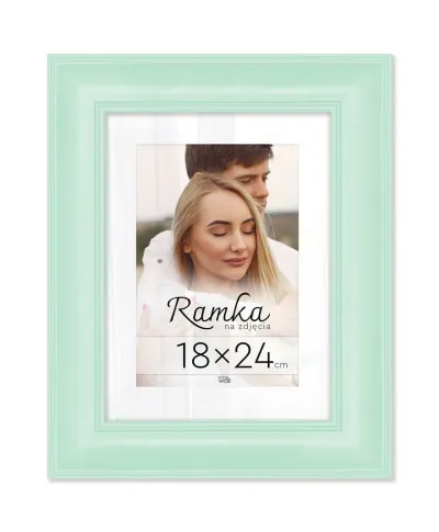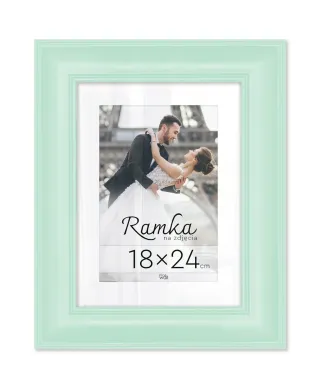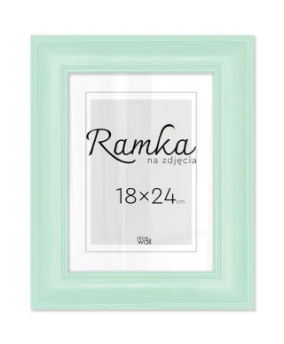 Miętowa ramka na zdjęcia 18x24 cm Eleganckie ramki do oprawy plakatów, zdjęć i rysunków. Wykonane zpłyty pilśniowej, polistyrenu i lekkiej, przejrzystej pleksy 1 mm. Ramę można powiesić w pionie lub poziomie. Każdy egzemplarz jest zafoliowany. Posiadającertyfikat FSC. Wyprodukowanew Polsce. Wymiary ramy: 18x24cm. Wymiary profilu: front 4 cm, bok 1,5 cm,