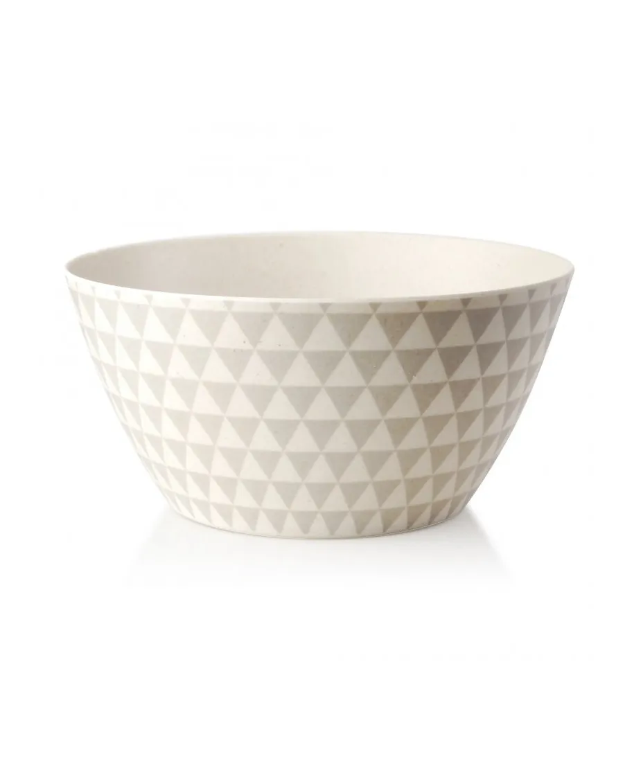 Miska wykonana z włókna bambusowego w kolorze szaro białym z geometrycznymi wzorami.Bambus jest tworzywem ekologicznym i biodegradowalnym - Kupując ten produkt dbasz o siebie i środowisko.Idealnie nadaje się do przechowywania równego rodzaju żywno