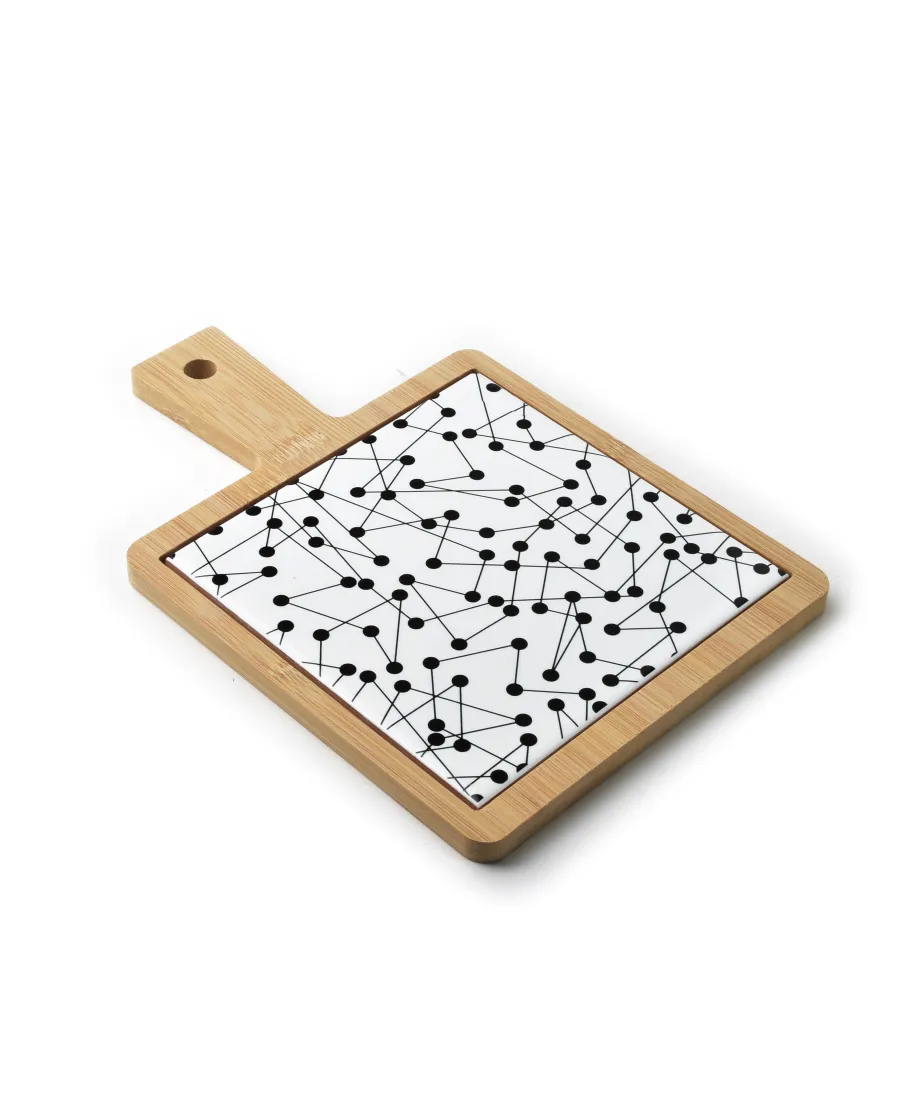 Odkryj nowoczesny styl i funkcjonalność z deską do serwowania MODERN KITCHEN. Ta kompaktowa deska o wymiarach 17x17x1 cm to idealne rozwiązanie dla tych, którzy cenią sobie estetykę i praktyczność w kuchni.\Dlaczego warto wybrać deskę do serwowania MODERN KITCHEN?\\wysoka jakość wykonania: deska wykonana z trwałego materiału, odporna na zarysowania i uszkodzenia, gwarantuje długotrwałe użytkowanie.\kompaktowy rozmiar: idealna do serwowania małych porcji, przekąsek, serów, wędlin i innych przystawek. jej niewielki rozmiar sprawia, że jest łatwa do przechowywania i doskonale sprawdzi się w każdej kuchni.\uniwersalność: doskonała do serwowania różnorodnych potraw . od serów, przez wędliny, po przekąski i przystawki. jej wszechstronność czyni ją niezastąpioną w każdej kuchni.\stylowy design: nowoczesny wygląd deski dodaje elegancji każdemu nakryciu stołu. naturalne materiały i precyzyjne wykończenie sprawiają, że deska jest zarówno funkcjonalna, jak i dekoracyjna.\łatwość czyszczenia: deska jest łatwa do utrzymania w czystości . wystarczy przetrzeć ją wilgotną ściereczką, aby zachowała swój piękny wygląd.\\Korzyści z posiadania deski do serwowania MODERN KITCHEN:\\estetyka i elegancja: deska dodaje wyjątkowego stylu każdemu posiłkowi, podnosząc estetykę serwowanych potraw.\praktyczność: idealna do codziennego użytku oraz na specjalne okazje, sprawdzi się zarówno w domowych warunkach, jak i podczas przyjęć.\trwałość: wykonana z wysokiej jakości materiałów, deska jest wytrzymała i odporna na codzienne zużycie.\bezpieczne użytkowanie: dzięki solidnej konstrukcji i stabilności, deska zapewnia komfort i bezpieczeństwo podczas serwowania.\\Podnieś jakość swoich serwowanych potraw dzięki desce do serwowania MODERN KITCHEN. Ciesz się nowoczesnym designem i funkcjonalnością, które sprawią, że każde spotkanie przy stole stanie się wyjątkowym doświadczeniem.\\Wymiary:\całość:25x17xh1cm\deska ceramiczna:15x15cm\