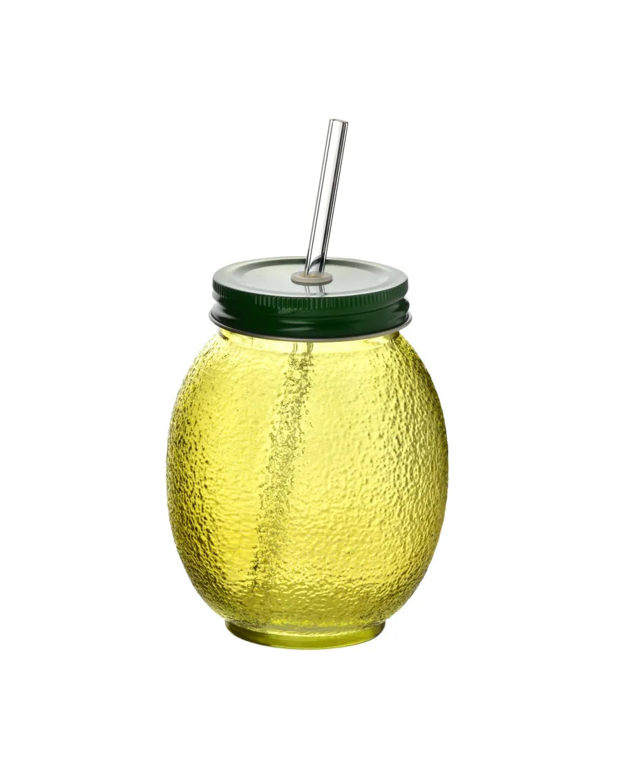 MODERN KITCHEN Szklany kubek Cytryna ze szklaną słomką . smak lata w Twoich rękach!Rozświetl każdy napój nutą świeżości i słońca! Szklany kubek MODERN KITCHEN w kształcie cytryny, z dopasowaną szklaną słomką, to letni must-have dla każdego, kto ceni styl, wygodę i ekologiczne rozwiązania. Najważniejsze zalety:Radosny, cytrynowy designŻółty kolor i realistyczna faktura cytryny przyciągają spojrzenia i wprowadzają słoneczny nastrój . idealny na lato.Szklana słomka w zestawieEstetyczna, trwała i wielokrotnego użytku . zgodna z trendem zero waste i bezpieczna dla zdrowia.Ekologiczne szkłoNeutralne w kontakcie z napojami, odporne na zapachy i łatwe w czyszczeniu . alternatywa dla plastiku.Wygodna pojemnośćIdealna na lemoniadę, soki, koktajle czy wodę smakową . doskonały wybór do codziennego użytku i na przyjęcia.Pomysłowy prezentSprawdzi się jako upominek na lato . dla dzieci, bliskich, klientów czy gości imprez okolicznościowych. Doskonały na lato i nie tylko:Kinderbale, pikniki, garden party, kawiarnie sezonowe, a nawet biuro . gdziekolwiek chcesz dodać cytrusowego uroku.nie należy używać w zmywarce