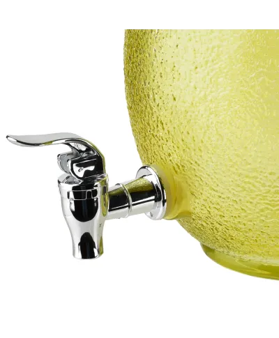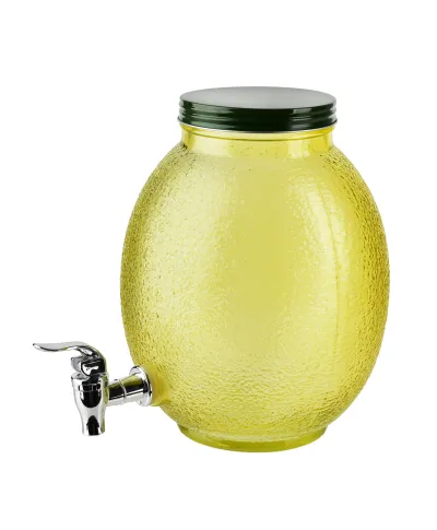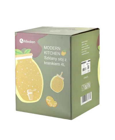 MODERN KITCHEN Szklany słój z kranikiem 4L . Cytryna w kolorze słońca!Wprowadź energię, świeżość i kolor do swojego letniego stołu dzięki szklanemu słojowi MODERN KITCHEN w kształcie cytryny. Jego intensywnie żółty kolor i pojemność 4 litry czynią go nie tylko praktycznym naczyniem, ale i efektowną ozdobą każdej imprezy plenerowej.Dlaczego warto go mieć?. Unikalny design . cytrynowa forma i kolorSoczyście żółty, z tłoczeniami imitującymi skórkę cytryny . pobudza zmysły i przyciąga wzrok. Doskonały wybór na lato!. Pojemność 4L . idealna na napoje dla gościLemonada, ice tea, woda z miętą czy sangria . zmieścisz wszystko, co orzeźwia i smakuje najlepiej w ciepłe dni.. Wbudowany kranik . wygodne serwowaniePraktyczny i higieniczny . pozwala na łatwe nalewanie bez rozlewania i bez potrzeby podnoszenia słoja.. Szkło . trwałe, bezpieczne i ekologiczneNeutralne dla napojów, łatwe do utrzymania w czystości i gotowe do wielokrotnego użytku.. Letni klimat w każdej kropliIdealny na przyjęcia ogrodowe, urodziny, grille i codzienne użytkowanie . szczególnie w gorące dniDla kogo?Dla rodzin, animatorów imprez, kawiarni sezonowych, hoteli oraz każdego, kto chce podawać napoje z uśmiechem i stylem.Zaleca się mycie ręczne, nie nadaje się do zmywarki