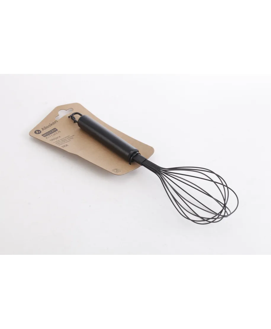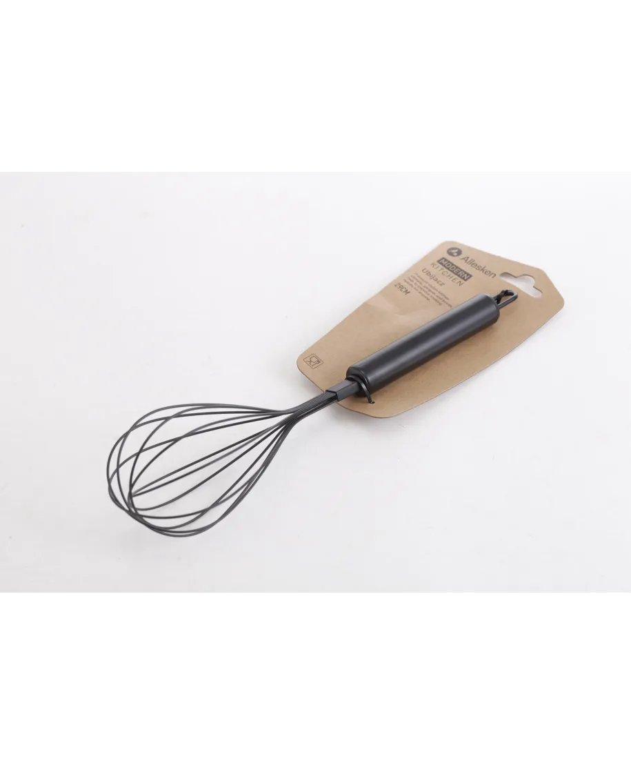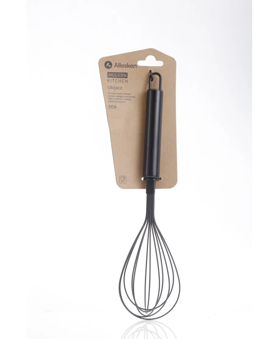 Poznaj ubijacz Modern Kitchen . niezastąpiony pomocnik w Twojej kuchni. Wykonany Źze stali nierdzewnej, w eleganckim czarnym kolorze, zapewnia trwałość i styl. ŹWygodna rączka gwarantuje komfort użytkowania, a uchwyt do powieszenia ułatwia Źprzechowywanie. Trzepaczka doskonale wymiesza każde ciasto czy sos, ubije białka Źlub śmietanę na puszystą masę. Idealny również do przygotowania domowej bezy czy Źdelikatnych omletów. Dzięki długości 29 cm, jest praktyczny i wygodny w użyciu. ŹWybierz ubijacz Modern Kitchen i ciesz się łatwością przygotowywania swoich Źulubionych potraw.