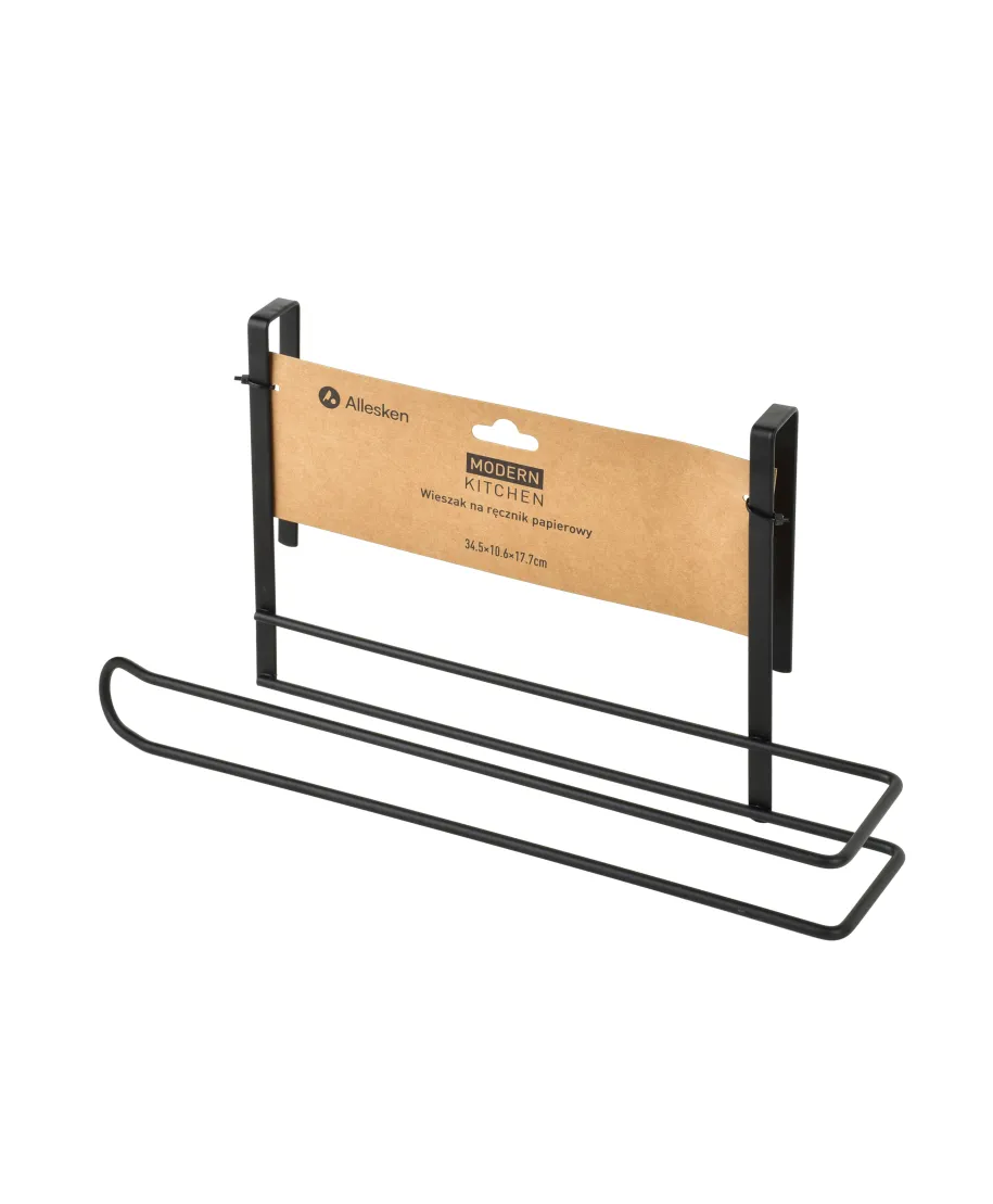 Wieszak na ręcznik papierowy MODERN KITCHEN to praktyczne i stylowe rozwiązanie do każdej nowoczesnej kuchni. Wykonany z metalu w kolorze czarnym, łączy w sobie trwałość z estetyką minimalizmu. Jego przemyślana konstrukcja pozwala na łatwe zawieszenie na drzwiczkach szafki, dzięki czemu nie wymaga wiercenia ani trwałego montażu. Z wymiarami 34,5 cm długości, 10,6 cm szerokości i 17,7 cm wysokości doskonale sprawdza się jako uchwyt na standardowy ręcznik papierowy, umożliwiając wygodny dostęp i oszczędność miejsca na blacie roboczym. Matowa czerń dodaje mu elegancji i sprawia, że wieszak dobrze komponuje się z nowoczesnymi i industrialnymi wnętrzami, stanowiąc zarówno funkcjonalny, jak i dekoracyjny element wyposażenia kuchni.