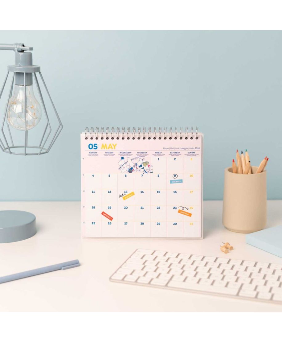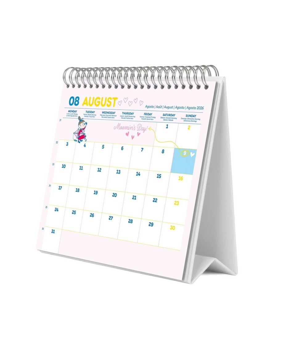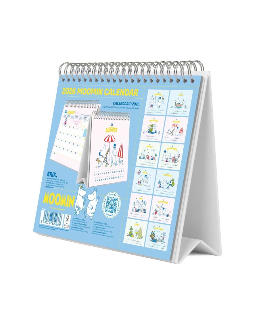 Muminki - biurkowy kalendarz 2026 Numer katalogowy: CS26020 Producent: Erik Kalendarz biurkowy Muminki 2026 od Erik to wyjątkowy organizer inspirowany światem stworzonym przez Tove Jansson. Zawiera 12 miesięcy ilustracji z bohaterami Doliny Muminków. Format 20x17 cm, spiralna oprawa i stojąca podstawa sprawiają, że jest praktyczny i dekoracyjny. Wykonany z papieru FSC, ekologiczny i trwały. Idealny do biura, domu lub na prezent dla miłośników klasycznych bajek i nostalgicznej estetyki. Nagłówki są w6 językach:angielskim, hiszpańskim, francuski, niemiecki, włoski, portugalski. Szczegóły techniczne Format: 20x17 cm Rok: 2026 Materiał: papier FSC Układ: miesięczny Oprawa: spiralna ze stojakiem Motyw: Muminki Producent: Erik Oryginalny produkt na oficjalnej licencji Muminki, wyprodukowany przez Erik.