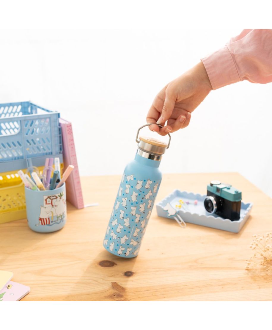 Muminki - butelka termiczna Numer katalogowy: BMA05 Producent: Grupo Erik Pojemność: 500 ml Butelka termiczna z motywem Muminków, wykonana ze stali nierdzewnej, z podwójnymi ściankami dla lepszej izolacji termicznej. Butelka nietoksyczna, bez BPA, smukła i wygodna do przenoszenia. Utrzymuje temperaturę napojów gorących i zimnych przez dłuższy czas i zachowuje estetykę grafiki po wielokrotnym używaniu. Materiał: stal nierdzewna Izolacja: podwójne ścianki Pojemność: 500 ml Bez BPA Oryginalny produkt na oficjalnej licencji Muminki / Grupo Erik.