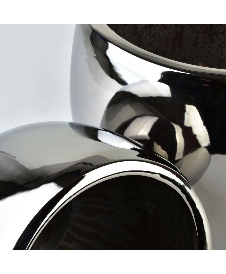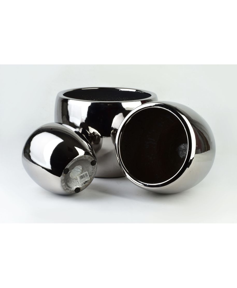 Komplet trzech osłonek ceramicznych NEVA SILVER marki MONDEX to elegancki zestaw o nowoczesnym, kulistym kształcie, który wprowadza do wnętrza wyjątkowy blask i luksusowy charakter. Każde naczynie wyróżnia się gładką, lustrzaną powierzchnią w kolorze srebrnym, która efektownie odbija światło i otoczenie, stając się wyrazistym punktem dekoracyjnym w salonie, sypialni czy biurze.Zestaw charakteryzuje się zróżnicowanymi wymiarami: największa osłonka ma 37x29,5 cm, średnia 28x24,5 cm, a najmniejsza 20,5x19,5 cm. Ich pękata, zaokrąglona forma zapewnia dużą pojemność i stabilność, idealnie eksponując rośliny o rozłożystym pokroju. Wykonane z wysokiej jakości ceramiki osłonki nie posiadają otworu odpływowego, co czyni je praktycznymi w użytkowaniu domowym. Należy jednak pamiętać, że produkt nie jest mrozoodporny, dlatego dedykowany jest wyłącznie do dekoracji przestrzeni wewnętrznych.
