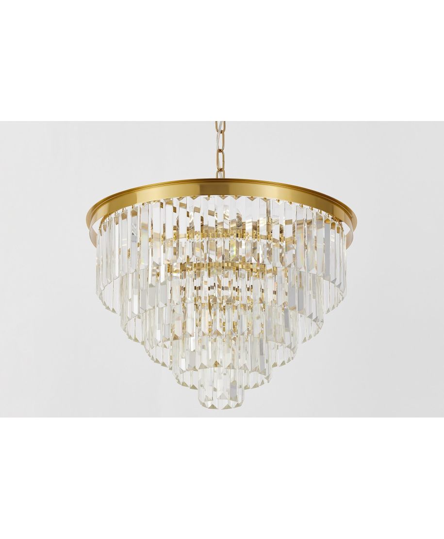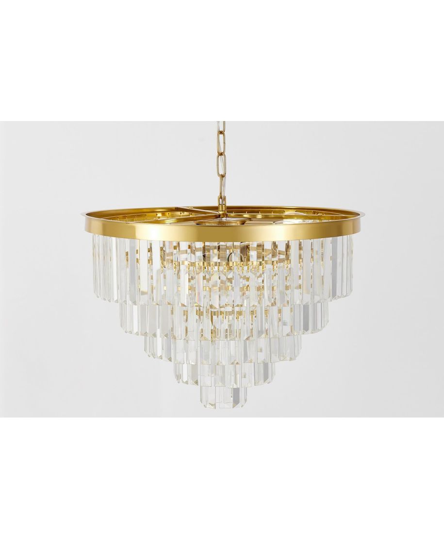 NOWOCZESNY ŻYRANDOL KRYSZTAŁOWY MOSIĘŻNY CAPRIA D50