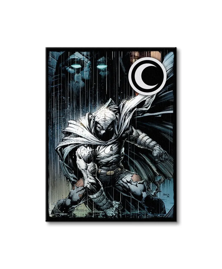 Moon Knight The Moon God - obraz na płótnie Oryginalny i licencjonowany obraz na płótnie idealny na każdą ścianę. Nasze obrazy wyróżniają: Fantastyczne barwy Wysokie nasycenie barw i ostrość, kolory utrzymują się przez długie lata. Płótno wysokiej jakości Płótno bawełniane 300g/m2 jest trwałe i mocne, jego struktura jest naturalna. Trwałe kolory, Dodatkowo lakierowana powierzchnia sprawia, że kolory są żywe przez dziesięciolecia. Solidna rama, Wykonana jest z naturalnego, sosnowego drewna, jest mocna i gruba a obraz solidny i wytrzymały. Zadrukowane boki, obrazy posiadają zadrukowane boki, nie potrzebują żadnej dodatkowej oprawy. Szczegóły techniczne: wydruk na płótnie bawełnianym 300g/m2 sosnowe krosna o grubości 2 cm i szerokości 3,5 cm druk cyfrowy