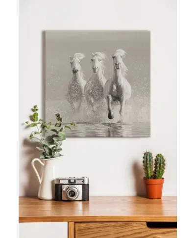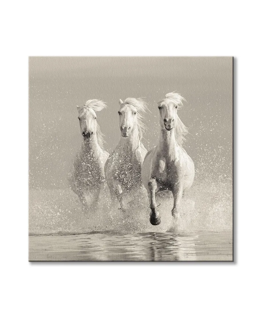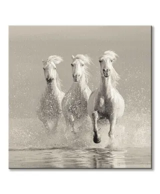 Obraz do salonu - Three White Horses - Konie 85x85 cm