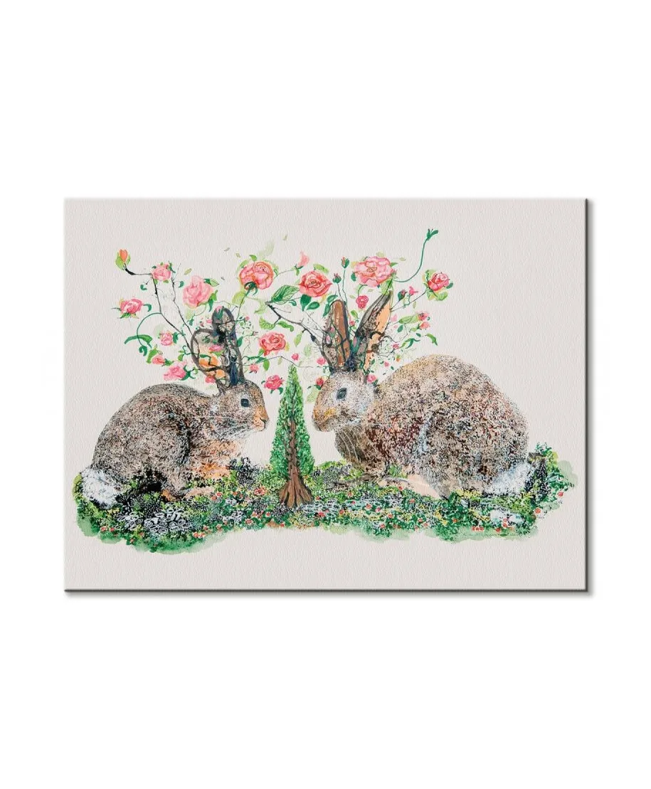 Rabbits And Roses - obraz na płótnie