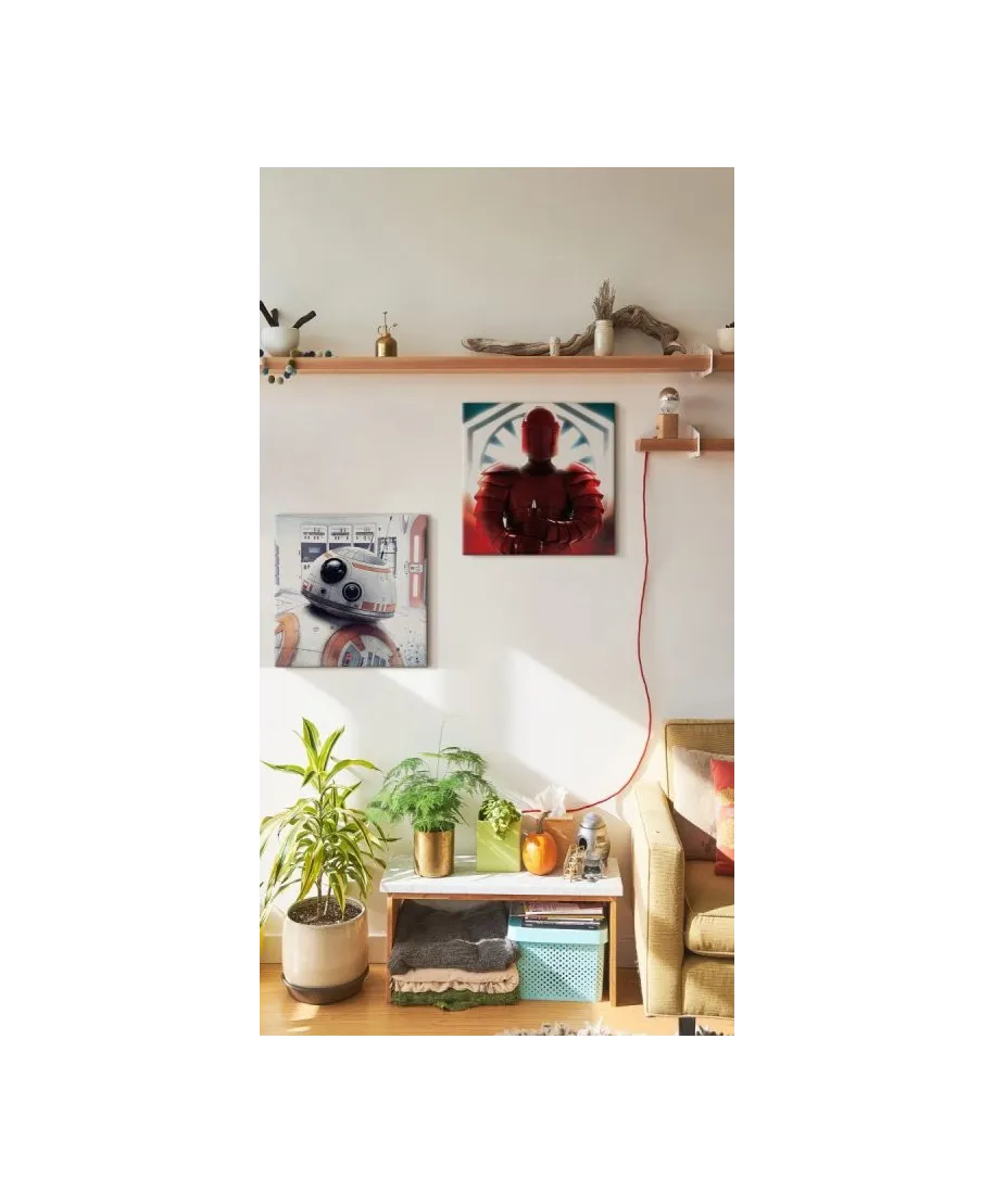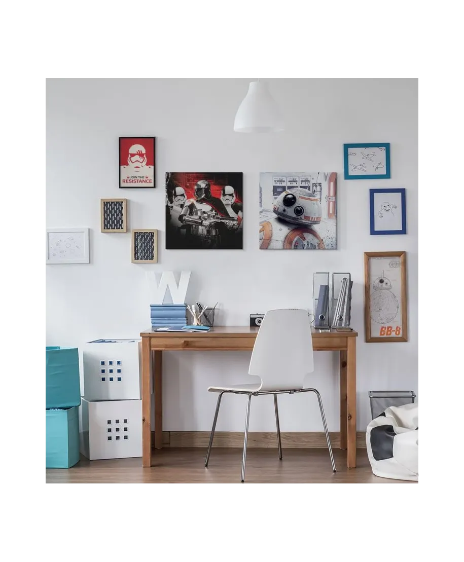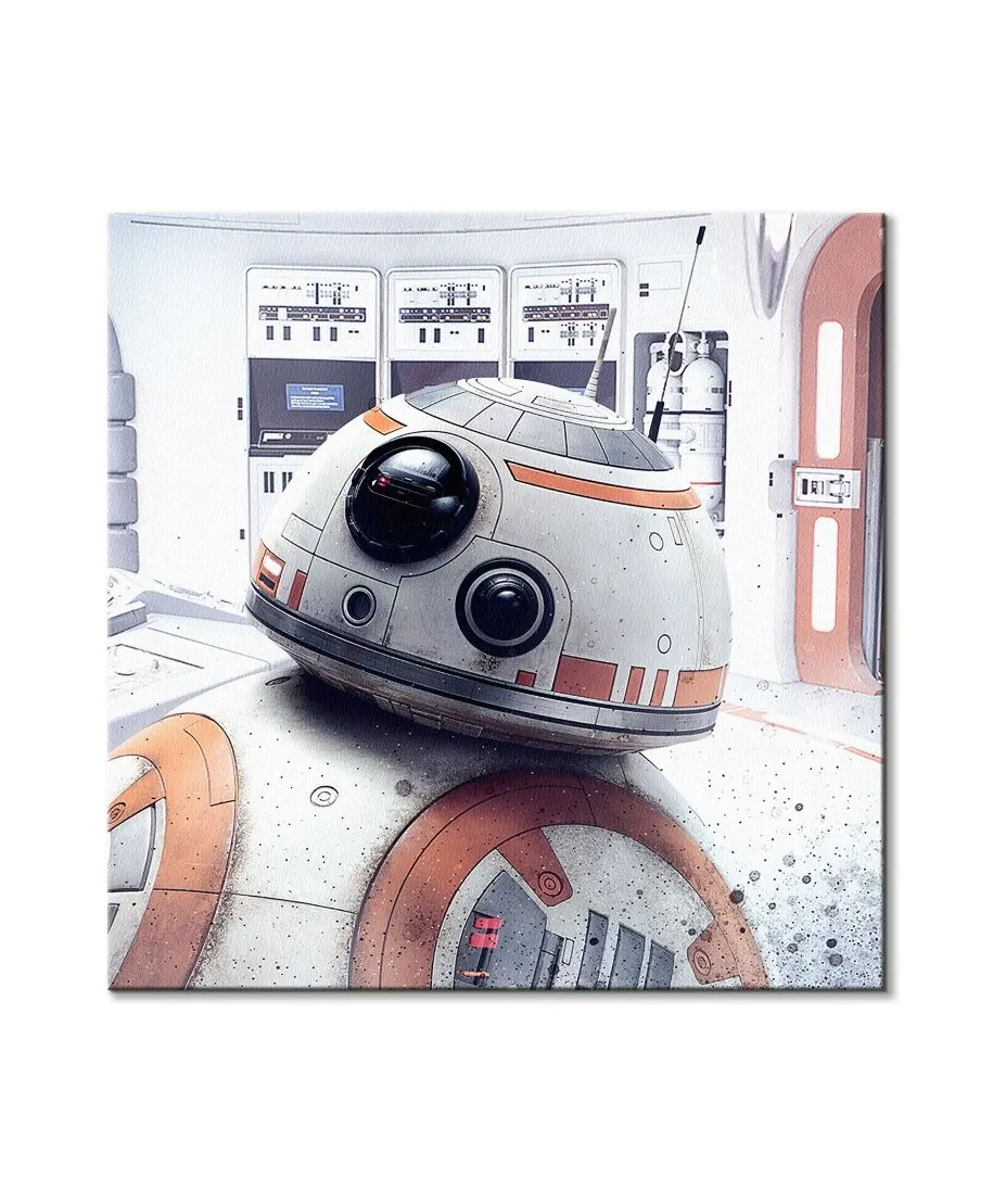 Star Wars: The Last Jedi (BB-8 Peek) - obraz na płótnie Naciągnięty na sosnowe krosna. Gotowy do zawieszenia na ścianę. Wykonany z najwyższą dbałością o detale. Obraz jest ostry a barwy nasycone. Ten egzemplarz posiada zadrukowane boki, nie trzeba go dodatkowo oprawiać. Płótno bawełniane na który został naniesiony obraz jest bardzo mocne i posiada ciekawą fakturę. Blejtrama wykonana jest natomiast z grubego drzewa sosnowego. Jest solidna, jej szerokość to 3,5 cm a grubość 2 cm. Kupując ten produkt masz pewność, że kupujesz z legalnego źródła i wspierasz artystów. Obraz jest oryginalny i posiada licencję. Lubisz wyróżniać się ciekawymi, ekskluzywnymi dekoracjami na ścianę? Ten obraz jest idealny dla Ciebie. Nikt nie przejdzie obojętnie obok niego, jest po prostu piękny. Dane techniczne: Płótno bawełniane 300g/m2. Sosnowe krosna o grubości 2 cm i szerokości 3,5 cm. Obraz zadrukowany cyfrowo. Wymiary obrazu 40x40 cm. Marka: Pyramid Posters.