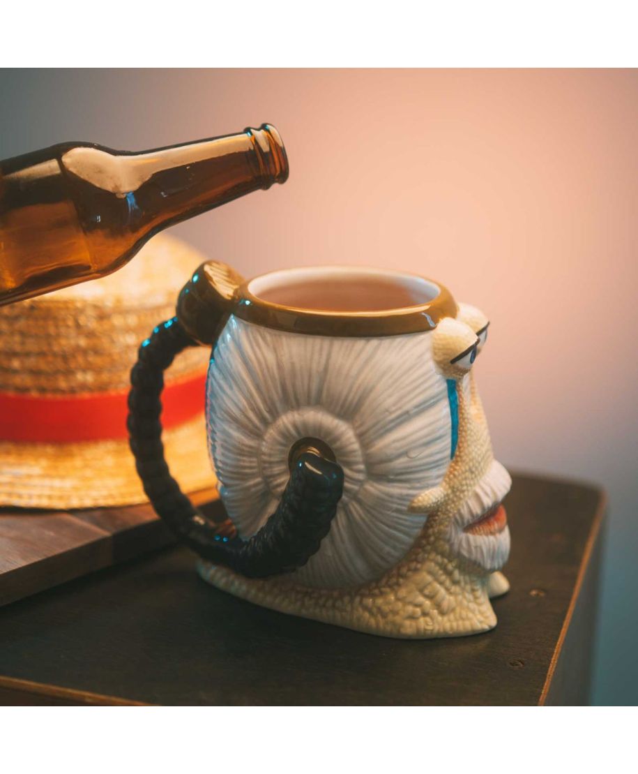 One Piece Den Den Mushi - kufel Numer katalogowy: JAR007 Producent: Erik Kufel „One Piece Den Den Mushi” od Erik to oryginalny gadżet inspirowany światem anime One Piece. Wykonany z ceramiki, odwzorowuje wygląd ślimaka komunikacyjnego z serii. Posiada duże ucho i stabilną podstawę, dzięki czemu jest wygodny w użytkowaniu i świetnie prezentuje się jako ozdoba. Idealny prezent dla fanów Luffy’ego i jego załogi. Szczegóły techniczne Wymiary: 11,3x14x17 cm Materiał: ceramika Pojemność: 800 ml Motyw: Den Den Mushi (One Piece) Właściwości: duże ucho, stabilna podstawa Producent: Erik Oryginalny produkt na oficjalnej licencji One Piece, wyprodukowany przez Erik.