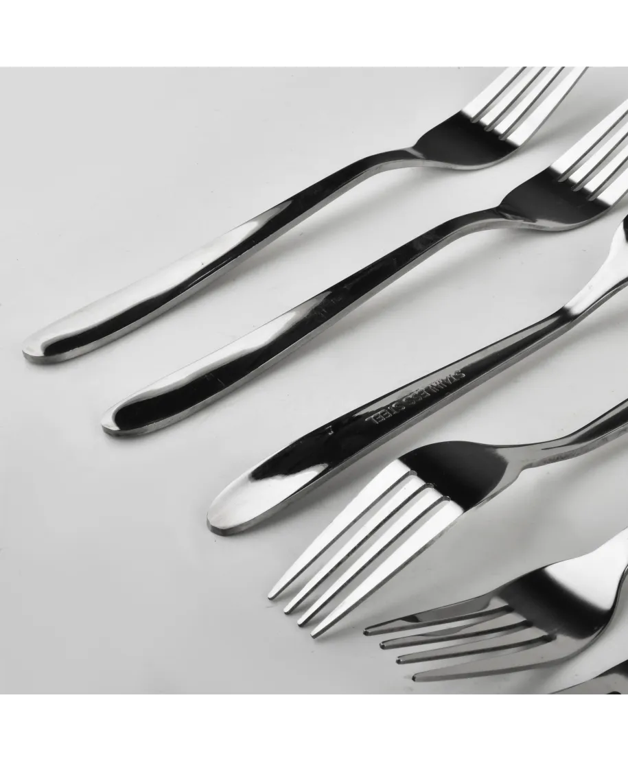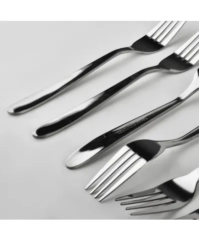 Komplet 6 widelców ORCHID o długości 20 cm to eleganckie i funkcjonalne uzupełnienie codziennej zastawy stołowej. Wykonane z wysokiej jakości stali nierdzewnej, widelce charakteryzują się trwałością, odpornością na zarysowania i korozję, a także estetycznym wykończeniem. Ich klasyczny kształt i wygodny uchwyt sprawiają, że doskonale leżą w dłoni i sprawdzają się zarówno podczas codziennych posiłków, jak i przy specjalnych okazjach. Możliwość mycia w zmywarce zapewnia łatwą i wygodną pielęgnację, co czyni zestaw ORCHID praktycznym wyborem do każdej kuchni.Użytkowanie Zaleca się mycie ręczne w celu zachowania ich połysku. Używaj łagodnych detergentów i miękkich gąbek, aby uniknąć zarysowań. Suszenie: Po umyciu sztućców zaleca się dokładne ich osuszenie, aby uniknąć powstawania plam wodnych, szczególnie w przypadku twardej wody.