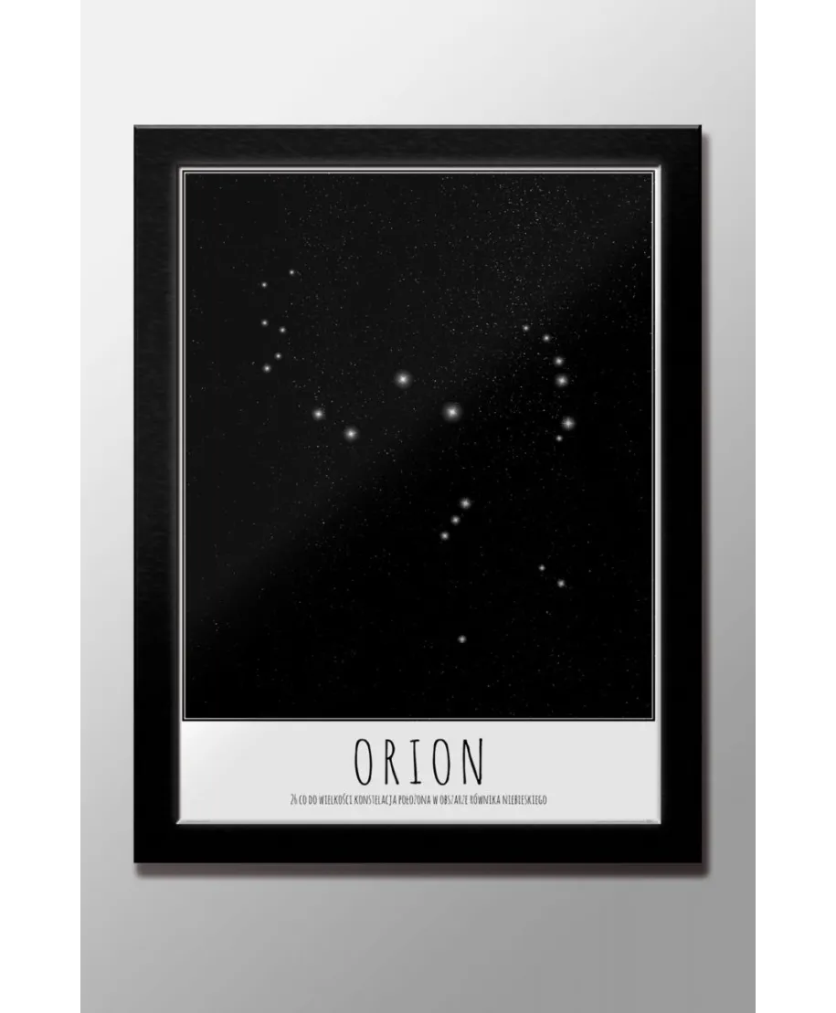 Plakat z mapą na ścianę, zatytułowany Orion z opisem Ciekawy i oryginalny plakat na ścianę. Wyprodukowany na papierze o wysokiej gramaturze w cyfrowej jakości. Plakat wykonany przez polskiego producenta. Świetnie nadaje się do oprawienia w ramy lub antyramy. Specyfikacja papier satynowy 220g/m2 druk cyfrowy wymiary plakatu 50x70 cm