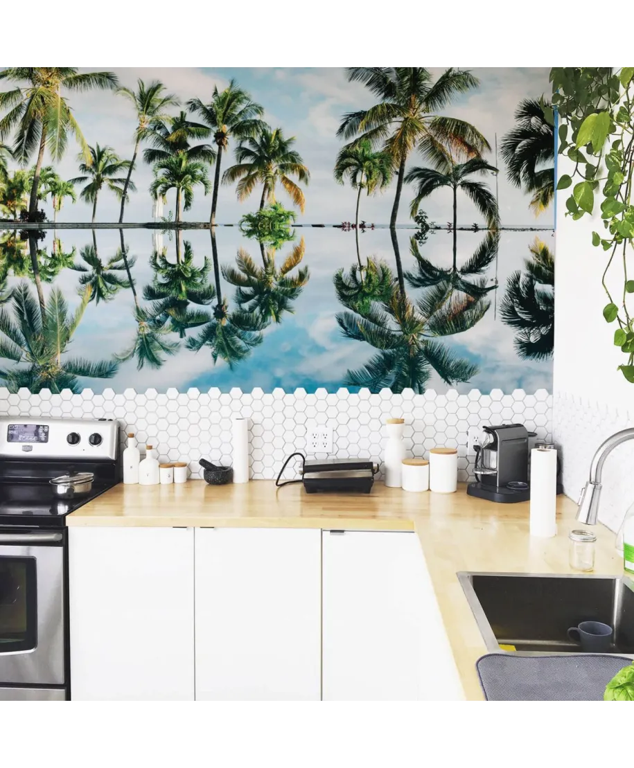 Palmy - fototapeta Nice Wall o wymiarach 175x115cm Chciałbyś odmienić wnętrze swojego mieszkania w szybki i prosty sposób? Możesz uzyskać wspaniały efekt bez zbędnych remontów i wielkich wydatków wybierając fototapetę z kolekcji Nice wall. Łatwo się kładzie Nasze fototapety ze względu na swój duży rozmiar podzielona są na 6 brytów, dzięki czemu łatwo położysz je na ścianie. Do każdego opakowania producent dołączył instrukcję, która poprowadzi Cię przez proces klejenia. Zalecany przez producenta klej to Pronicel W Extra. Fantastyczne, żywe barwy Fototapety z kolekcji Nice wall wykonane są w druku cyfrowym. Oznacza to, że otrzymujesz obraz najwyższej jakości, który będzie zachwycał ostrością i soczystymi barwami. Możesz mieć pewność, że Twoi goście nie przejdą obok tego dzieła obojętnie i będą zazdrościć Ci pięknego wnętrza. Dodatkowe informacje: Wydruk na satynowym, matowym podłożu o gramaturze 135 g/m2. Wyprodukowana przez Polskiego producenta, oryginalna fototapeta, która posiada licencję. Sposób czyszczenia: sucha ściereczka lub miotełka do kurzu Instrukcja klejenia Kliknij [pobierz]