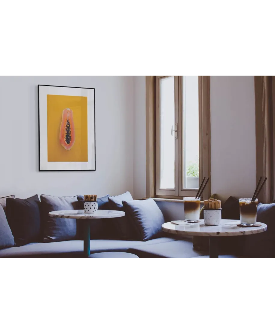 Papaja - oryginalna reprodukcja Nice Wall Szukasz oryginalnej reprodukcji na ścianę? Głębokie nasycenie barw i ostrość fotografii sprawi, że nie będziesz mógł od niej oderwać wzroku. Powierzchnia reprodukcji jest matowa, dzięki temu nie odbija intensywnego światła i przyjemnie się ją ogląda. Papier na którym wydrukowana jest reprodukcja jest bardzo mocny a druk trwały. Reprodukcja została zaprojektowana i wydrukowana przez Polską firmę. Kupując naszą reprodukcję wspierasz rodzimy rynek. Szczegóły techniczne: Wydruk na mocnym i grubym papierze 220g/m2 Wymiary arkusza reprodukcji 60x80 cm Marka: Nice Wall