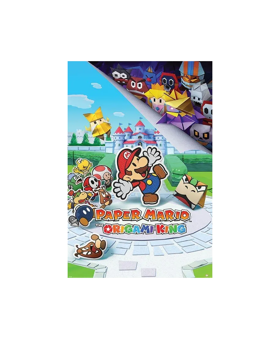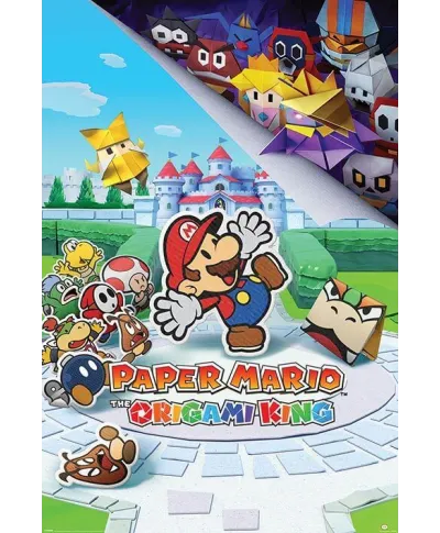 Plakat na ścianę Paper Mario The Origami King Plakaty wyróżniają się rewelecyjną jakością, intensywnymi i wyrazistymi barwami. Papier gruby i trwały, plakaty świetnie układają się w ramach za szybą. Produkty posiadają oryginalną licencję producenta, to ich oficjalne wydanie. Plakaty posiadają matową powierzchnię, dzięki czemu nie odbija się od nich intensywne światło. Szczegóły techniczne: wydruk na mocnym i grubym papierze 150g/m2 wymiary plakatów: 61x91,5 cm