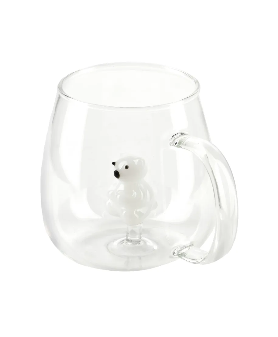Peter Bear szklany kubek z uroczym misiem w środku (400 ml). Peter Bear to kubek, który wprowadza odrobinę dziecięcej radości i uroku do codziennych rytuałów. Wykonany z krystalicznie przejrzystego szkła borokrzemowego, zachwyca zarówno swoim minimalistycznym designem, jak i wyjątkową trwałością. To nie jest zwykły kubek. Kiedy nalewasz ulubiony napój, w jego wnętrzu wyłania się mały, uroczy miś, jakby właśnie wkraczał do Twojego świata, gotów poprawić Ci nastrój. Czyste szkło pozwala w pełni dostrzec szczegóły tej wyjątkowej figurki. Jest to detal, który ożywia każdą filiżankę kawy, herbaty czy aromatycznego kakao.Szkło borokrzemowe słynie ze swojej odporności na wysokie temperatury, co czyni Peter Bear idealnym zarówno do gorących, jak i zimnych napojów. Lekkie, a zarazem wyjątkowo trwałe, zapewnia komfort użytkowania i niezawodność. Możesz cieszyć się jego urokiem każdego dnia, bez obaw o uszkodzenia czy zarysowania.Kubek Peter Bear jest także niezwykle praktyczny. Nadaje się do mycia w zmywarce, co oznacza, że utrzymanie go w czystości jest szybkie i bezproblemowe. Jest również w pełni bezpieczny do kontaktu z żywnością, więc każdy napój zachowuje swój naturalny smak i aromat.Ten kubek to nie tylko naczynie . to drobna radość zamknięta w szkle, która dodaje wyjątkowego charakteru każdej chwili. Idealny na prezent dla bliskiej osoby lub jako stylowy element Twojej kolekcji. Peter Bear towarzyszy Ci podczas porannych kaw, popołudniowych herbat czy wieczornych chwil relaksu.Dodaj odrobinę ciepła i przytulności do swojej codzienności z Peter Bear. Kubkiem, który wywołuje uśmiech przy każdym łyku.