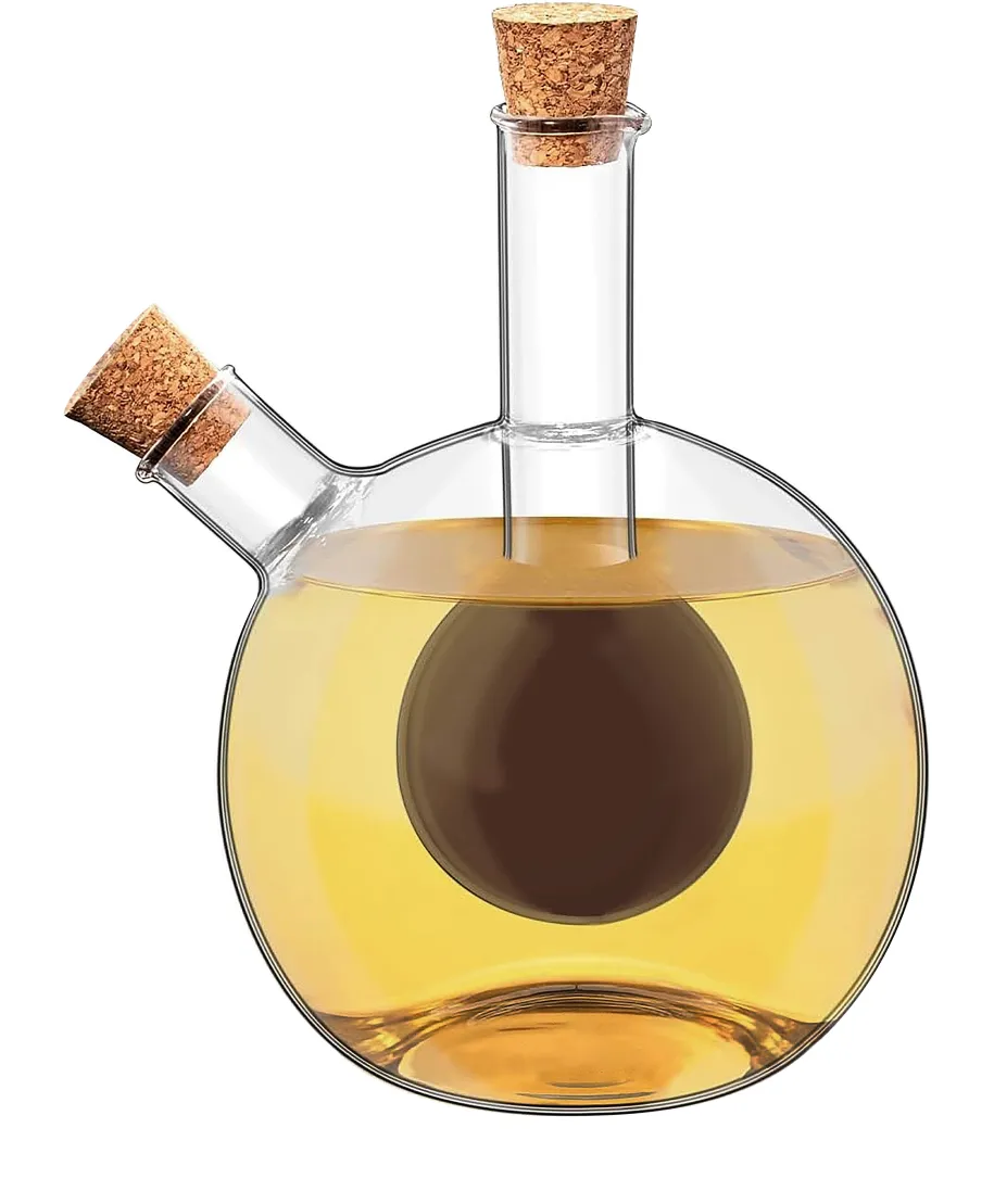 PETER . Butelka na oliwę i ocet 2w1Stylowe i funkcjonalne rozwiązanie dla Twojej kuchniZadbaj o smak i estetykę podczas gotowania i serwowania potraw. Butelka PETER to eleganckie i praktyczne naczynie 2w1: pojemna część na oliwę (400 ml) oraz mniejsza, zintegrowana buteleczka na ocet (50 ml). Wykonana z wysokiej jakości szkła, zapewnia nie tylko wygodę dozowania, ale również prezentuje się doskonale na kuchennym blacie czy stole podczas rodzinnych posiłków.Korzyści, które docenisz od razu:2w1 . oszczędność miejsca i maksimum wygodyJedna butelka, dwa składniki . oliwa i ocet zawsze pod ręką.Nowoczesny designTransparentne szkło pięknie eksponuje kolory płynów i nadaje kuchni eleganckiego charakteru.Dokładne dozowaniePrecyzyjny dziubek pozwala na łatwe i kontrolowane polewanie . bez kapania i marnowania.Łatwa w czyszczeniu i konserwacjiSzkło wysokiej jakości odporne na działanie kwasów i tłuszczów . możesz bezpiecznie myć ręcznie lub w zmywarce.Świetna na prezentDla miłośników gotowania, fanów estetyki i domowych szefów kuchni.Idealna do:oliwy z oliwek, oleju lnianego, octu balsamicznego lub jabłkowego,domowej kuchni, restauracji, bistro, a także na stół w jadalni,stylowych aranżacji . od rustykalnych po nowoczesne.Zadbaj o smak i wygląd swoich potrawZ butelką PETER Twoje dania zyskują nowy wymiar . nie tylko smakują lepiej, ale i prezentują się z klasą. To praktyczny dodatek, który pokochasz od pierwszego użycia.