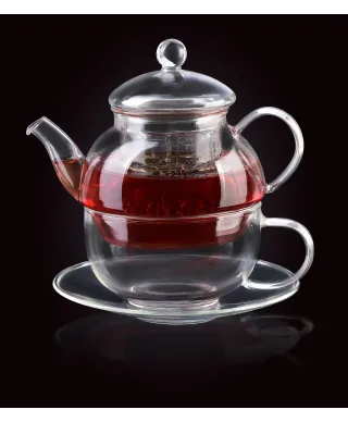 Tea for one - dzbanek z filiżanką oraz spodkiem z serii PETER marki AFFEKDESIGN.\Dzbanek z filiżanką do herbaty to jeden z najbardziej wykwintnych sposobów\parzenia i serwowania ulubionego napoju. Słynące ze swego szlachetnego wyglądu, szklane dzbanki do herbaty wykonane są z borokrzemu, który jest odporny na wysoką temperaturę i nie absorbuje smaku. Bardzo estetyczny design sprawia, że herbata parzona lub podawana w dzbanku z filiżanką jest ozdobą każdej kuchni. Dzięki urządzeniu, możesz przygotować sobie idealną porcję herbaty bez dodatkowego naczynia do odcedzania, co pozwala Ci czerpać pełnię aromatu każdego rodzaju herbaty. Oprócz tego, dzbanki z filiżanką są łatwe w czyszczeniu oraz posiada piękne jednostkowe - prezentowae opakowanie! Idealny na prezent.\\pojemność filiżanki: 350ml\poemność dzbanka: 420ml\wymiary: 18x13,5xh15,5cm\średnica spodka:13,5xh2cm\otwór dzbanka: 6cm\średnica filiżanki: 10,5cm\wysokość filiżanki: 6cm\zaparzacz szklany: 7xh6cm\zapakowany jednostkowo w color box: 14x14h19cm\\można używać w zmywarce, najlepiej na górnej półce\