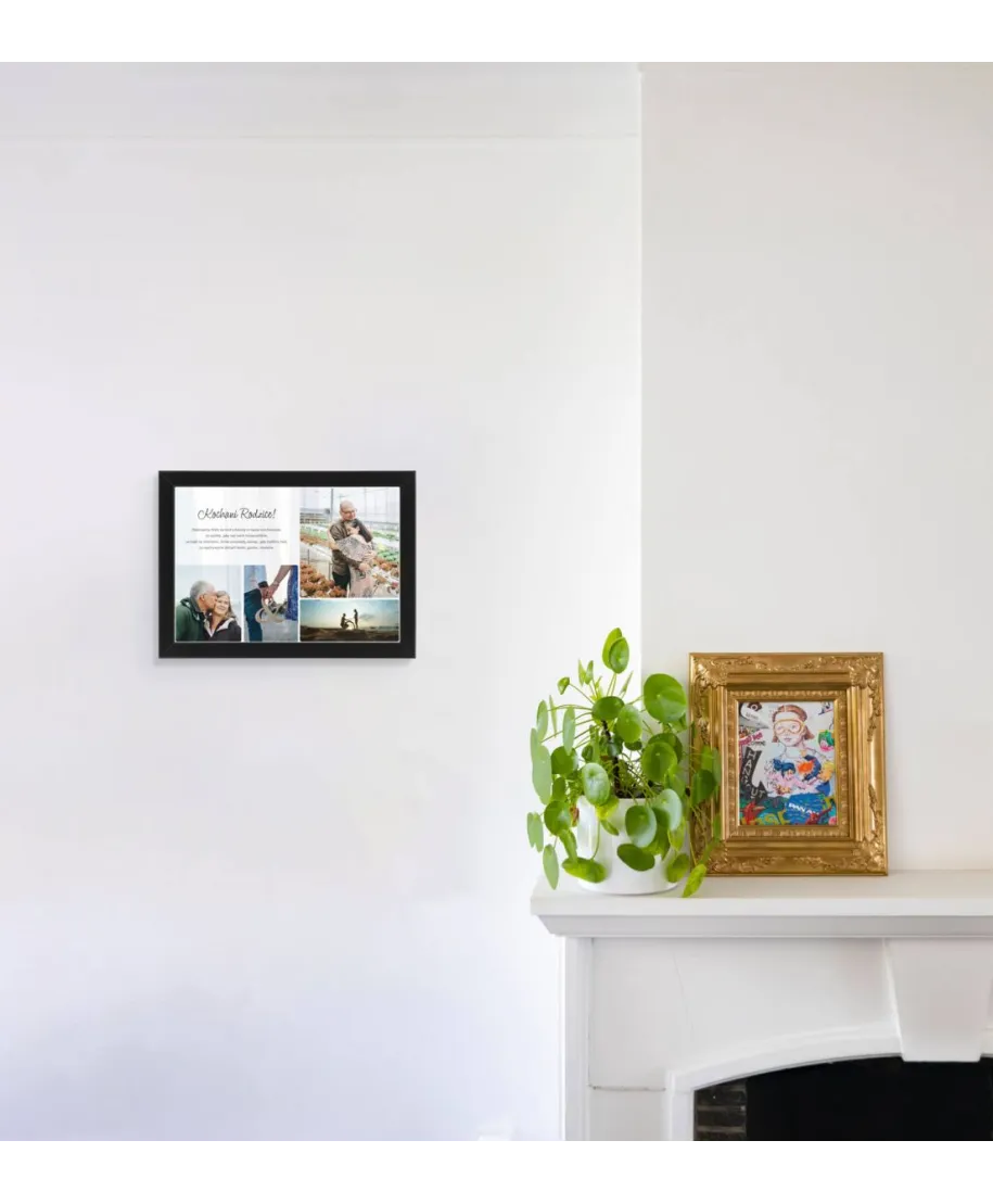 Plakat A4 Podziękowanie dla Rodziców 21x30 cm w czarnej ramce Jeśli szukasz oryginalnego sposobu by podziękować swoim Rodzicom za okazaną pomoc, to plakat w ramie z kolorową grafiką będzie świetnym wyborem. Taki plakat to wzruszający prezent, którypozostanie wspaniałą pamiątką na lata. Nasze plakaty wyróżnia: Rewelacyjna jakość, Nasycone iwyraźnebarwy, Wytrzymały papier220g/m2 Satynowa powierzchnia, Druk cyfrowycyfrowy, Oprawiony w prostą i smukłą czarną ramkę.