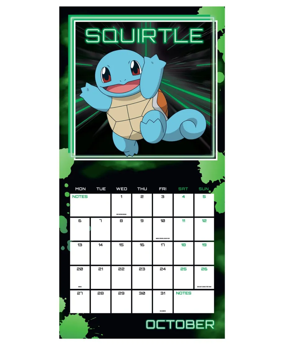 Pokemon oficjalny kalendarz na ścianę na 2025 rok Oryginalny i licencjonowany kalendarz, posiada 12 rozkładanych stron o wymiarach 30x60 cm. Na każdej z kart znajduje się duża fotografia oraz czytelne kalendarium z miejscem na notatki. W kalendarzu znajduje się 12 unikalnych zdjęć dla każdego miesiąca. Okładki wykonane są z papieru powlekanego matowego i laminowanego o gramaturze 250 g/m2, wnętrze z papieru powlekanego matowego o gramaturze 150 g/m2. Nagłówki są w języku angielskim. Oprawa zszywkowa. Złożony kalendarz 30x30 cm. Rozłożony kalendarz 30x60 cm. Zawiera otwór 5 mm do zawieszenia na ścianie.