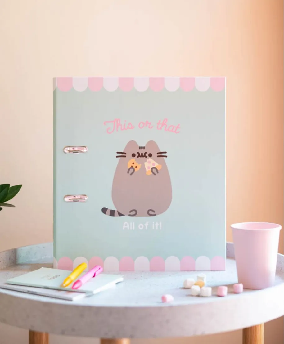 Segregator A4 "Pusheen - All of it!" Prezentujemy uroczy segregator z kultowym motywem Pusheen. Na jego okładce widnieje Pusheen trzymająca smakołyki - pizzę i ciasteczko, a obok niej błyskotliwy napis "This or that. All of it!", który wywoła uśmiech na twarzy każdego. Dzięki trwałej konstrukcji z tektury jest to nie tylko stylowy, ale także solidny sposób na przechowywanie Twoich dokumentów. Specyfikacje produktu: Materiał: tektura Zamknięcie: brak Dźwignia: tak Wkład: nie Wymiar: 32x28x4 cm Oficjalne wydanie Produkt posiada licencję producenta. Kupując w naszym sklepie masz 100% pewności, że otrzymasz oryginalny produkt. Zamawiając w autoryzowanym sklepie wspierasz ulubionych artystów, twórców i marki.