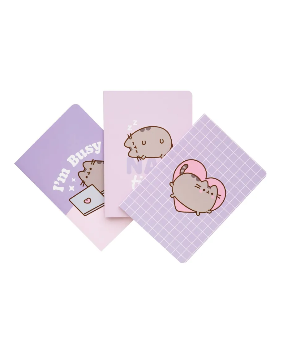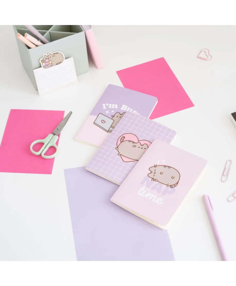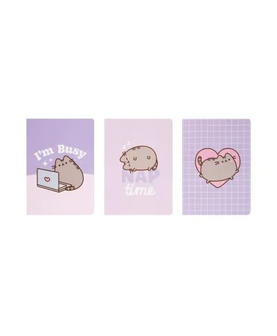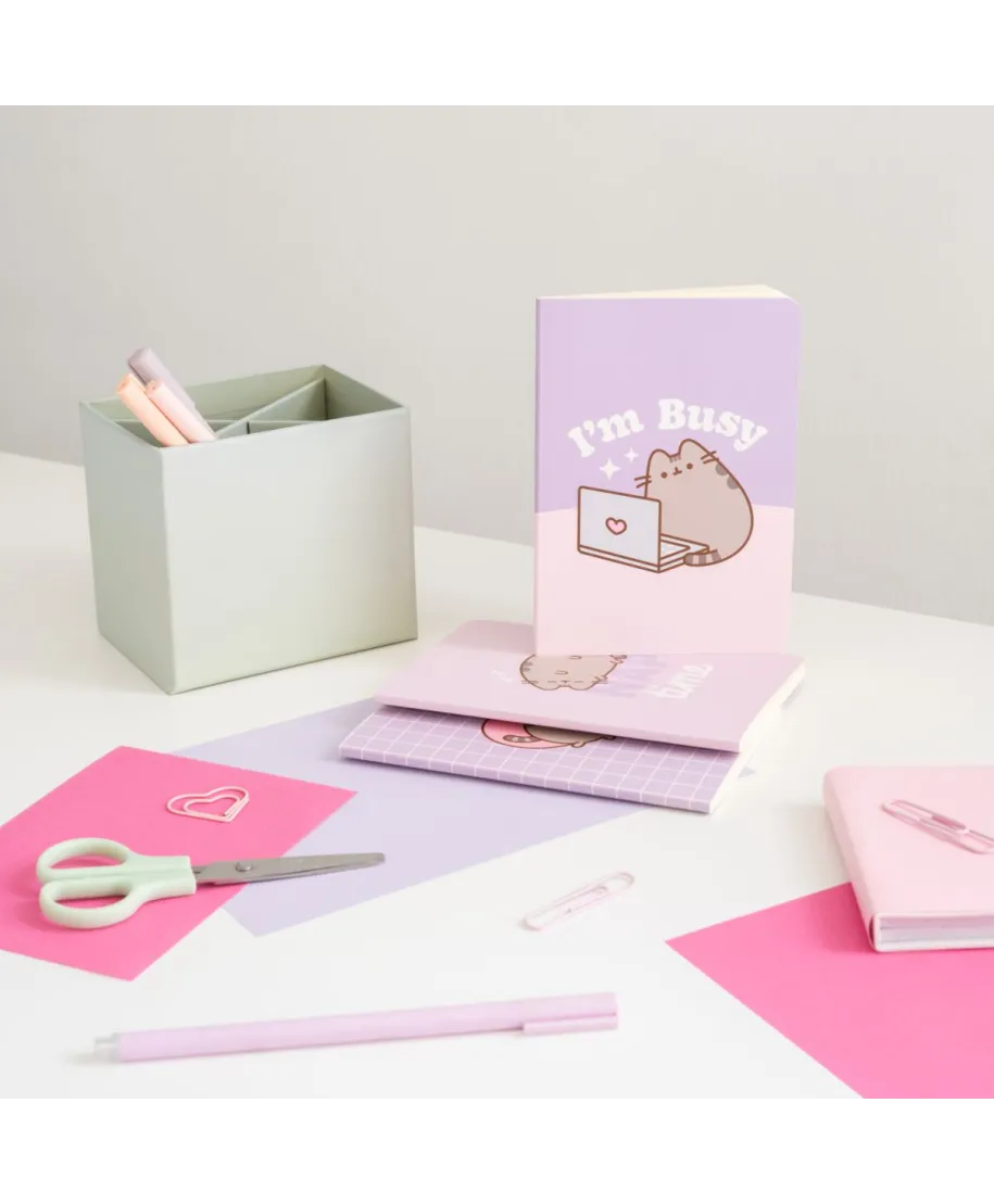Pusheen I'm Busy - zestaw 3 zeszytów A6 Zestaw trzech kompaktowych zeszytów A6 Pusheen I'm Busy, stworzony z myślą o codziennych notatkach i użytku osobistym. Każdy zeszyt ma miękką oprawę z trzema różnymi wzorami Pusheen oraz układy stron: linie, kropki i czyste, co zapewnia wszechstronność użytkowania. Dzięki papierowi o gramaturze 300 g/m2 na okładce i 80 g/m2 wewnątrz, notesy są trwałe i estetyczne. Świetnie sprawdzą się jako praktyczny gadżet dla fanów Pusheen, idealny na prezent lub codzienne zapiski. Szczegóły techniczne: Format: A6 (10,5 x 14,8 cm) Rodzaj wnętrza: linie, kropki, czyste Ilość kartek: 32 (64 strony) Okładka: miękka, papier 300 g/m2 Wnętrze: papier 80 g/m2 Oryginalny produkt licencjonowany, idealny dla fanów Pusheen poszukujących stylowych akcesoriów.