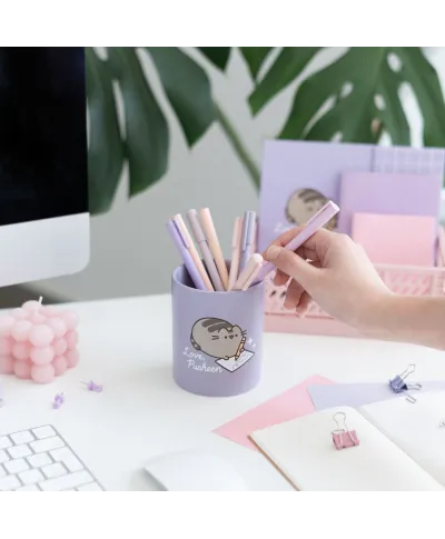 Pusheen Moments - pojemnik na przybory Stylowy pojemnik na przybory z motywem Pusheen to świetna propozycja dla miłośników tej uroczej postaci. Wykonany z ceramiki, ten kompaktowy pojemnik dodaje elegancji i organizacji na każdym biurku. Idealny do przechowywania długopisów, ołówków i innych akcesoriów. Dzięki swojemu uroczemu designowi i wysokiej jakości materiałom, doskonale sprawdzi się jako funkcjonalna dekoracja. Wymiary: 10,5 x 8,5 cm. Szczegóły techniczne Materiał: ceramika Wymiary: 10,5 x 8,5 cm Styl: motyw Pusheen Licencjonowany produkt Pusheen, gwarantujący najwyższą jakość i autentyczność. Świetny wybór na prezent dla fanów Pusheen w każdym wieku.