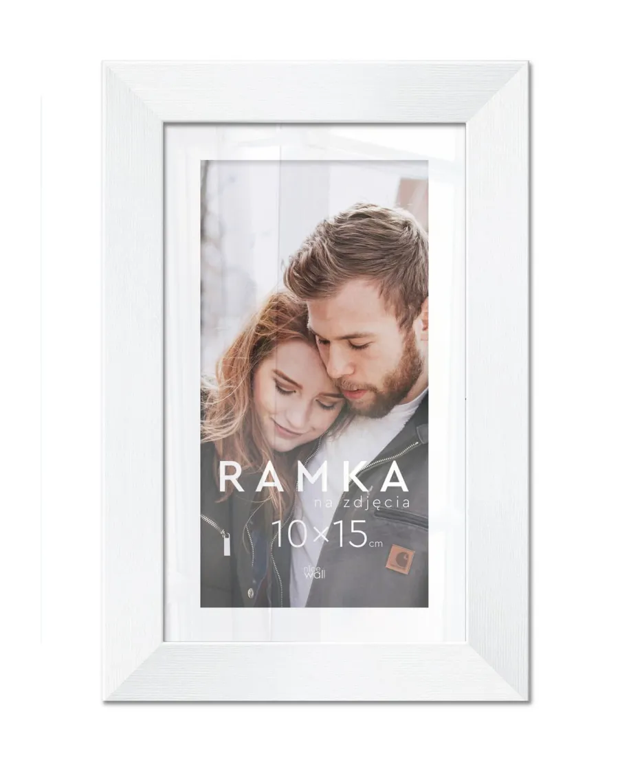 Ramka na zdjęcia 10x15 cm Biała Eleganckie ramki do oprawy plakatów, zdjęć i rysunków. Wykonane zpłyty pilśniowej, polistyrenu i lekkiej, przejrzystej pleksy 1 mm. Ramę można powiesić w pionie lub poziomie. Każdy egzemplarz jest zafoliowany. Posiadającertyfikat FSC. Wyprodukowanew Polsce. Wymiary ramy: 10x15 cm. Wymiary profilu: front 1,5 cm, bok 1,3 cm,