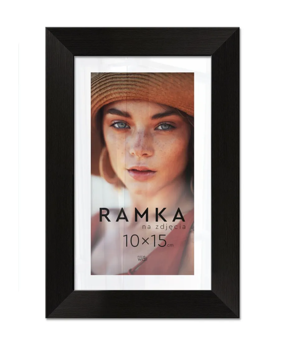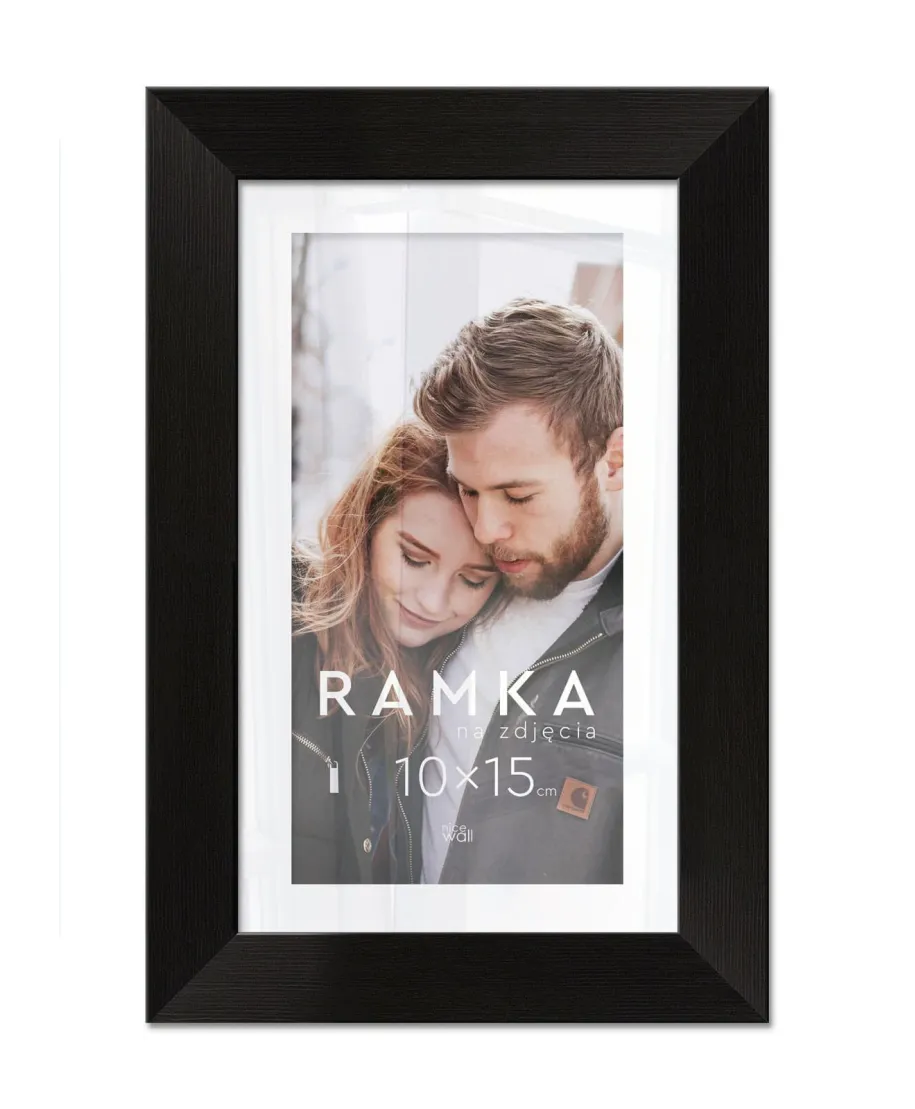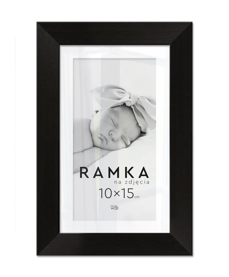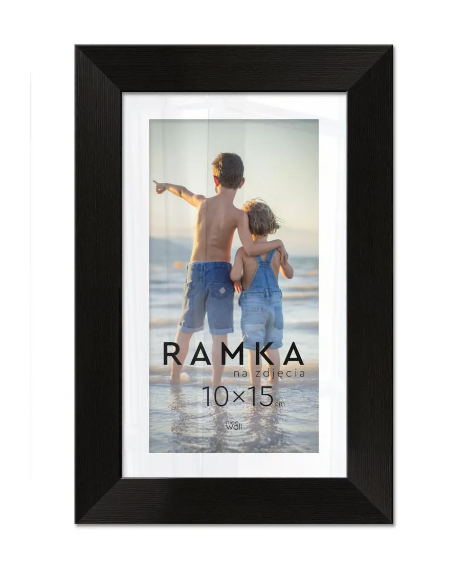 Ramka na zdjęcia 10x15 cm Czarna Eleganckie ramki do oprawy plakatów, zdjęć i rysunków. Wykonane zpłyty pilśniowej, polistyrenu i lekkiej, przejrzystej pleksy 1 mm. Ramę można powiesić w pionie lub poziomie. Każdy egzemplarz jest zafoliowany. Posiadającertyfikat FSC. Wyprodukowanew Polsce. Wymiary ramy: 10x15 cm. Wymiary profilu: front 1,5 cm, bok 1,3 cm,