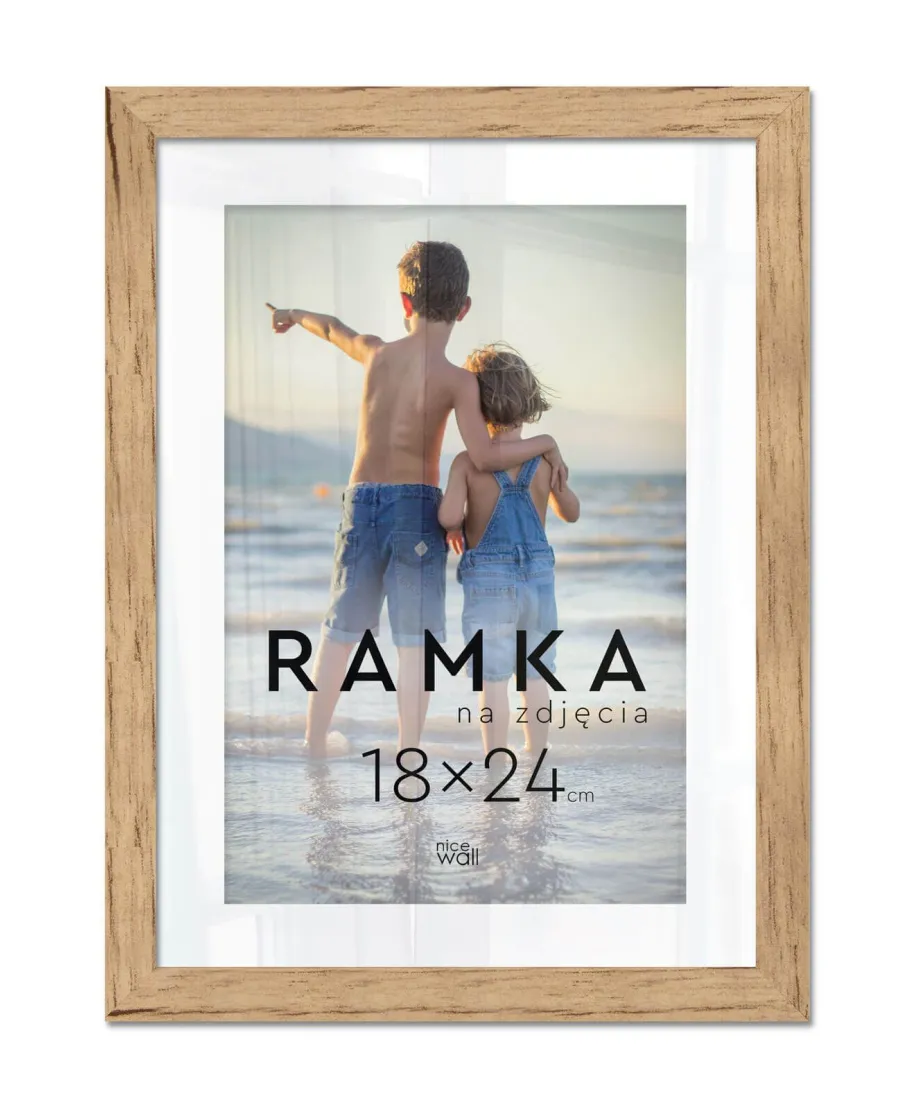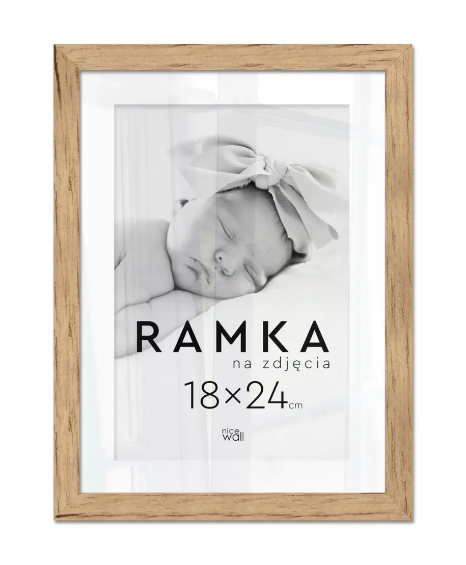 Ramka na zdjęcia 18x24 cm Brzoza Eleganckie ramki do oprawy plakatów, zdjęć i rysunków. Wykonane zpłyty pilśniowej, polistyrenu i lekkiej, przejrzystej pleksy 1 mm. Ramę można powiesić w pionie lub poziomie. Każdy egzemplarz jest zafoliowany. Posiadającertyfikat FSC. Wyprodukowanew Polsce. Wymiary ramy: 18x24 cm. Wymiary profilu: front 1,5 cm, bok 1,3 cm,