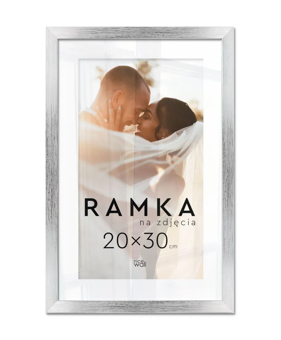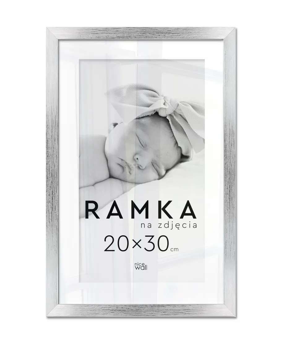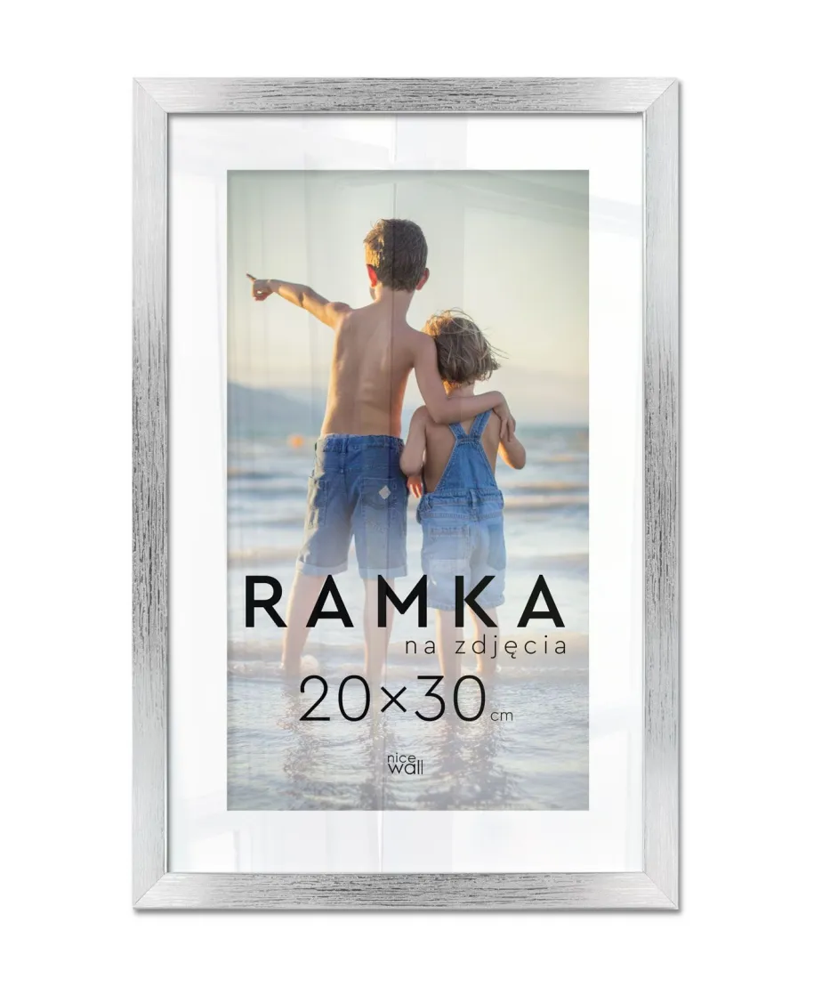 Ramka na zdjęcia 20x30 cm Srebrna Eleganckie ramki do oprawy plakatów, zdjęć i rysunków. Wykonane zpłyty pilśniowej, polistyrenu i lekkiej, przejrzystej pleksy 1 mm. Ramę można powiesić w pionie lub poziomie. Każdy egzemplarz jest zafoliowany. Posiadającertyfikat FSC. Wyprodukowanew Polsce. Wymiary ramy: 20x30 cm. Wymiary profilu: front 1,5 cm, bok 1,3 cm,