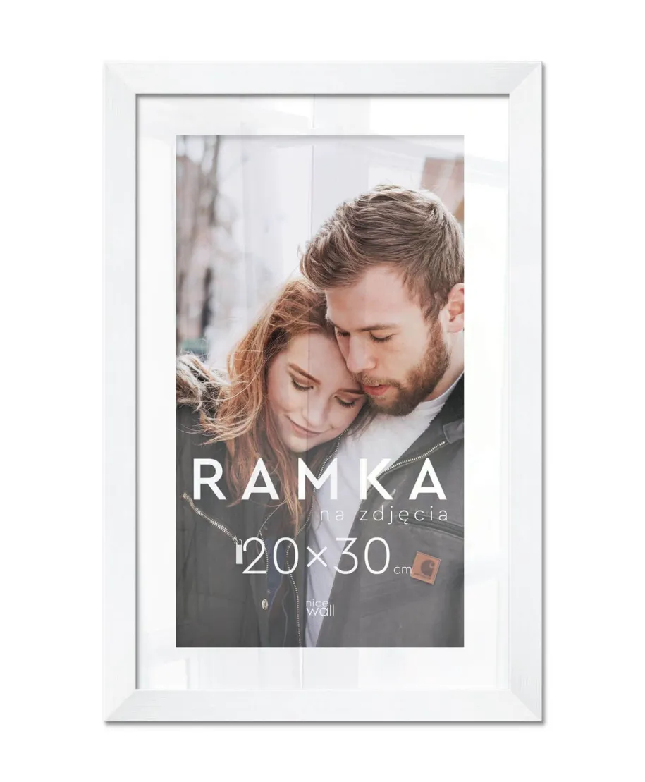 Ramka na zdjęcia 20x30 cm z podpórką Biała Eleganckie ramki do oprawy plakatów, zdjęć i rysunków. Wykonane zpłyty pilśniowej, polistyrenu i lekkiej, przejrzystej pleksy 1 mm. Ramę można powiesić w pionie lub poziomie. Posiadają na plecach przymocowaną podpórkę, dzięki której można położyć oprawione zdjęcie na stojąco. Każdy egzemplarz jest zafoliowany. Posiadającertyfikat FSC. Wyprodukowanew Polsce. Wymiary ramy: 20x30 cm. Wymiary profilu: front 1,5 cm, bok 1,3 cm,