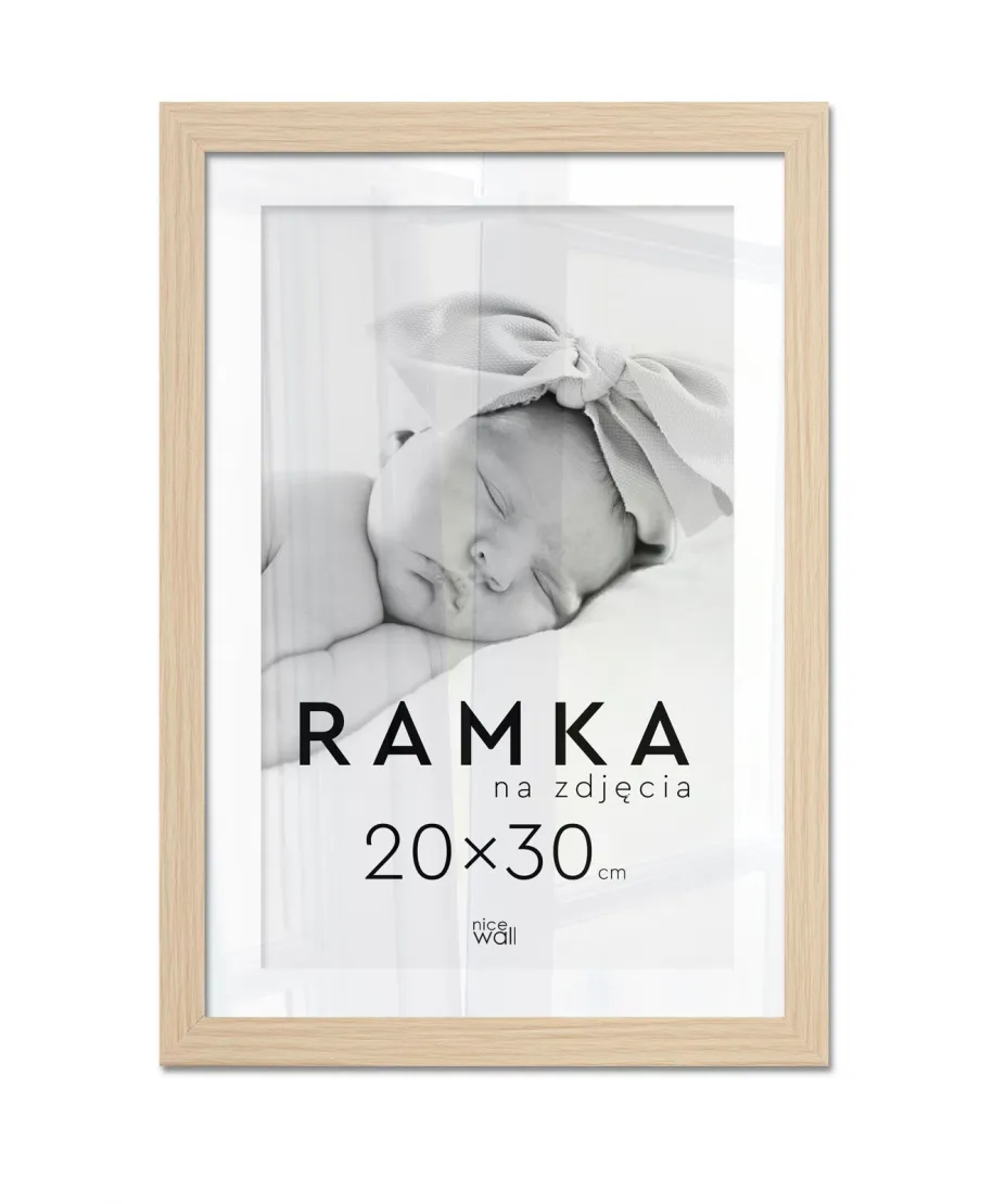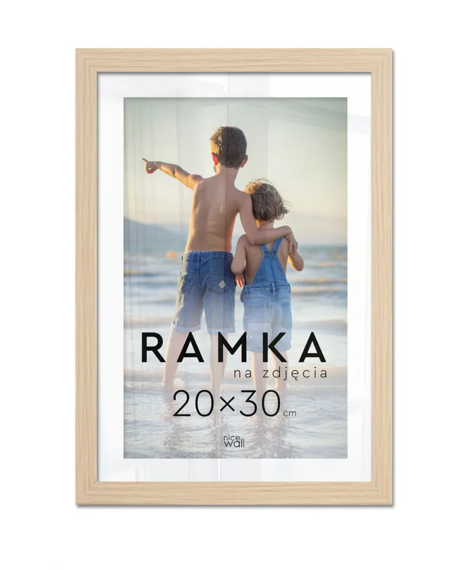 Ramka na zdjęcia 20x30 cm z podpórką Buk Eleganckie ramki do oprawy plakatów, zdjęć i rysunków. Wykonane zpłyty pilśniowej, polistyrenu i lekkiej, przejrzystej pleksy 1 mm. Ramę można powiesić w pionie lub poziomie. Każdy egzemplarz jest zafoliowany. Posiadającertyfikat FSC. Wyprodukowanew Polsce. Wymiary ramy: 20x30 cm. Wymiary profilu: front 1,5 cm, bok 1,3 cm,