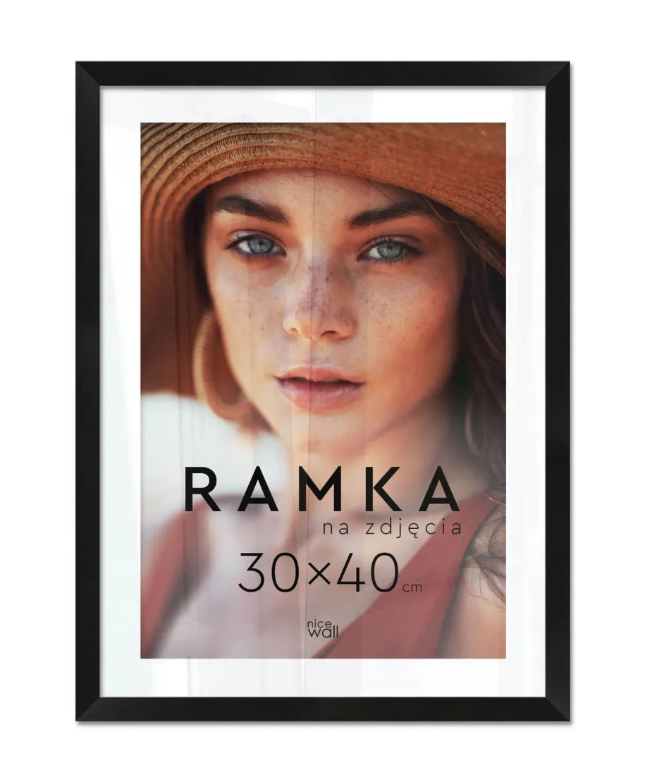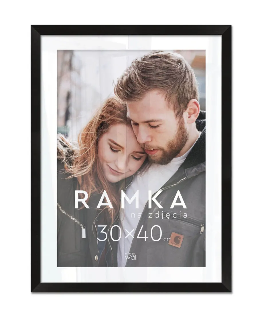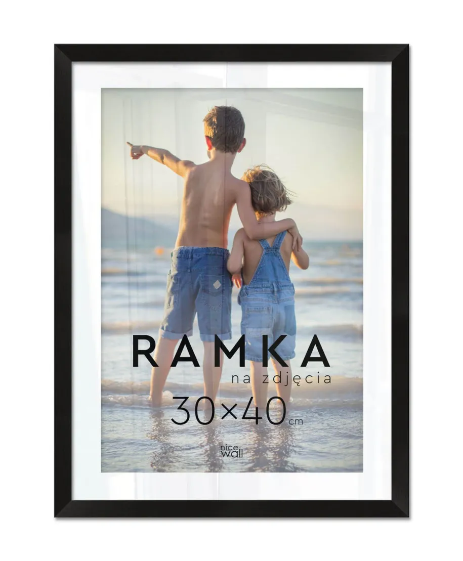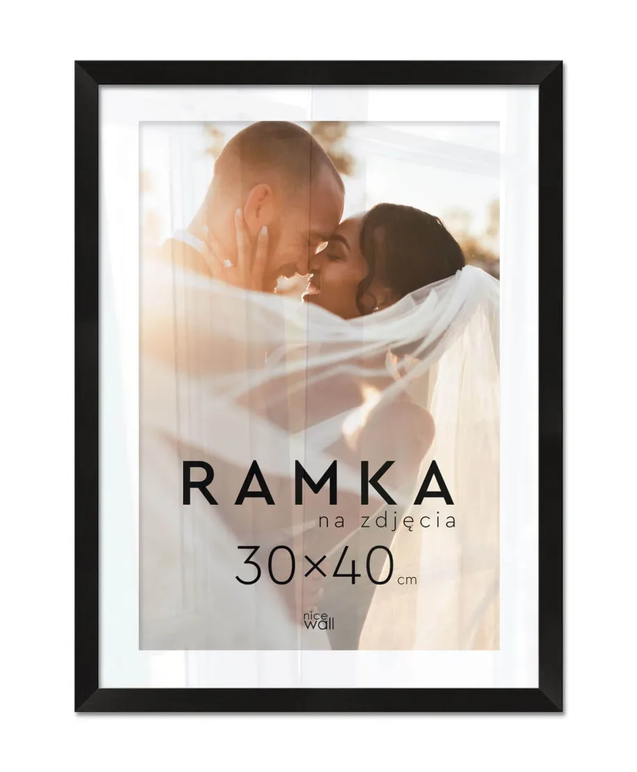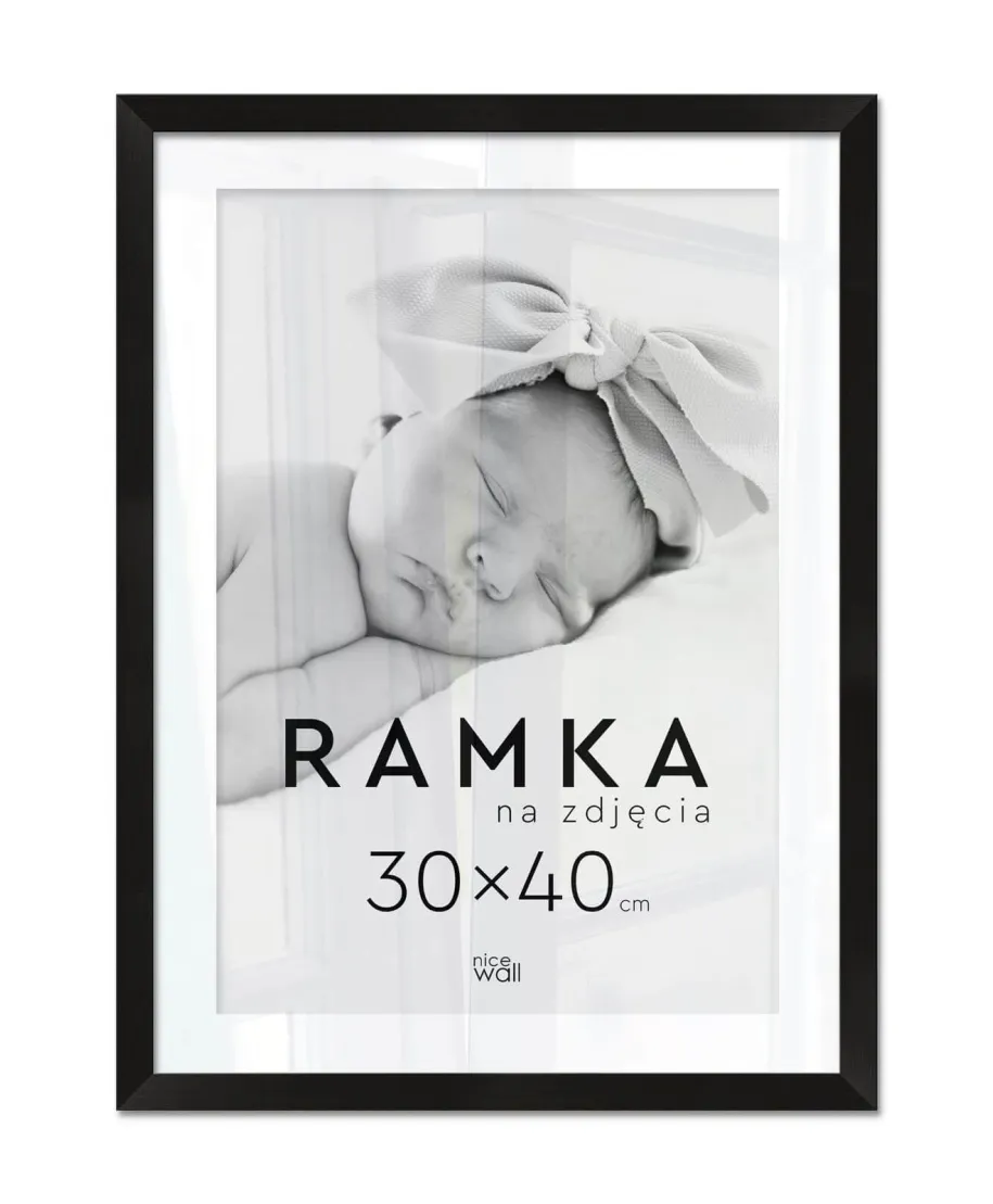 Ramka na zdjęcia 30x40 cm Czarna Eleganckie ramki do oprawy plakatów, zdjęć i rysunków. Wykonane zpłyty pilśniowej, polistyrenu i lekkiej, przejrzystej pleksy 1 mm. Ramę można powiesić w pionie lub poziomie. Każdy egzemplarz jest zafoliowany. Posiadającertyfikat FSC. Wyprodukowanew Polsce. Wymiary ramy: 30x40 cm. Wymiary profilu: front 1,5 cm, bok 1,3 cm,