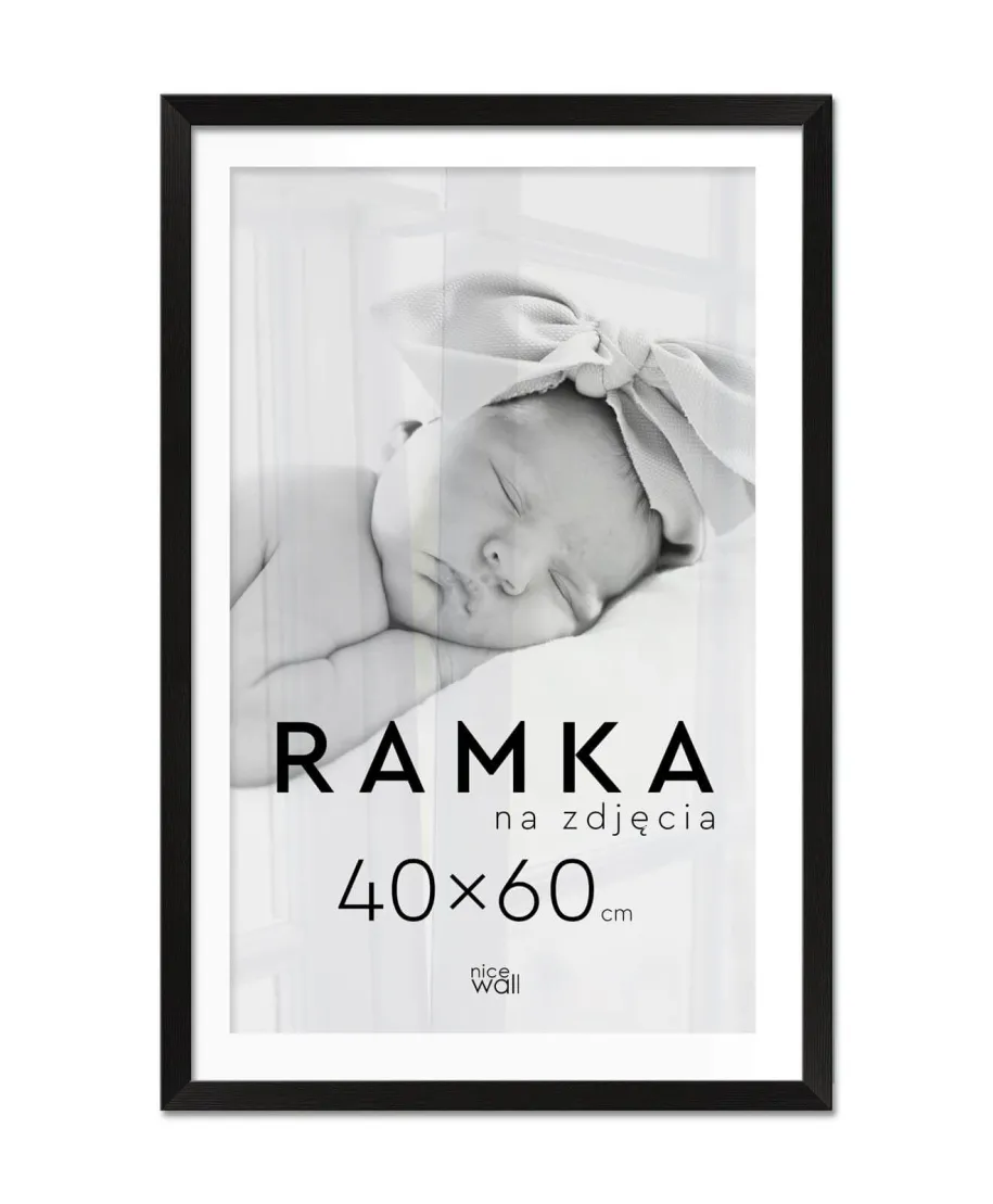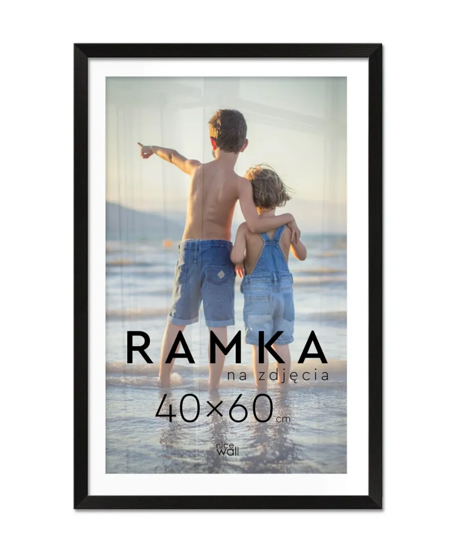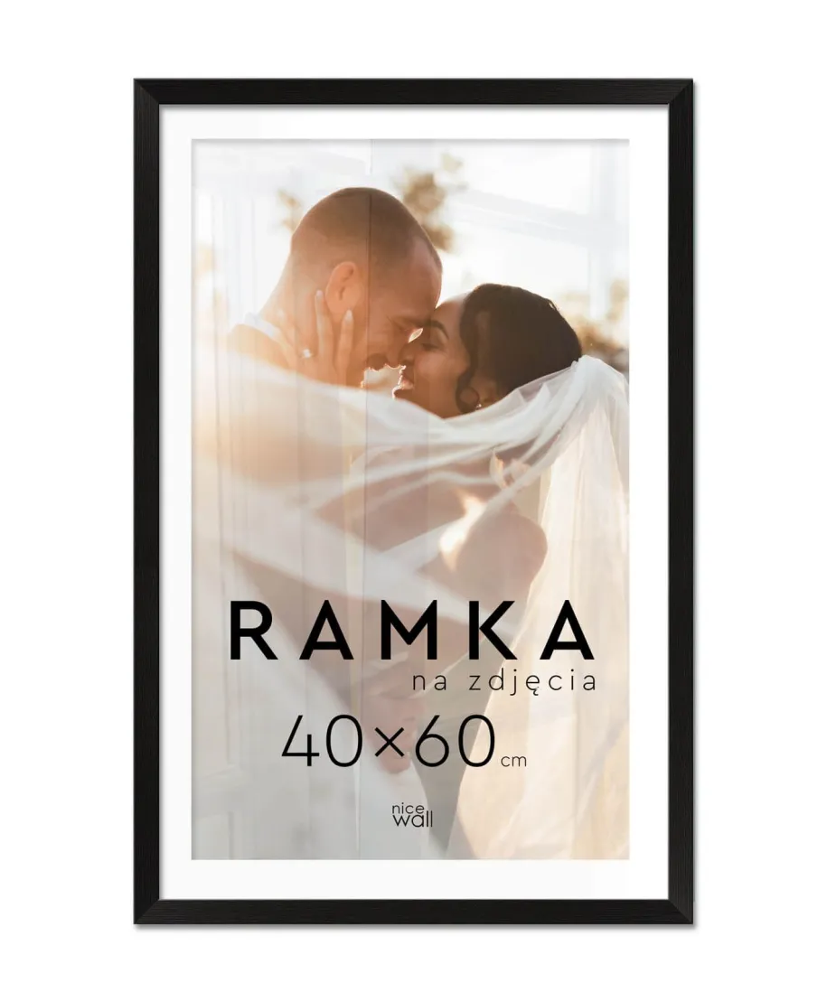 Ramka na zdjęcia 40x60 cm Czarna Eleganckie ramki do oprawy plakatów, zdjęć i rysunków. Wykonane zpłyty pilśniowej, polistyrenu i lekkiej, przejrzystej pleksy 1 mm. Ramę można powiesić w pionie lub poziomie. Każdy egzemplarz jest zafoliowany. Posiadającertyfikat FSC. Wyprodukowanew Polsce. Wymiary ramy: 40x60 cm. Wymiary profilu: front 1,5 cm, bok 1,3 cm,
