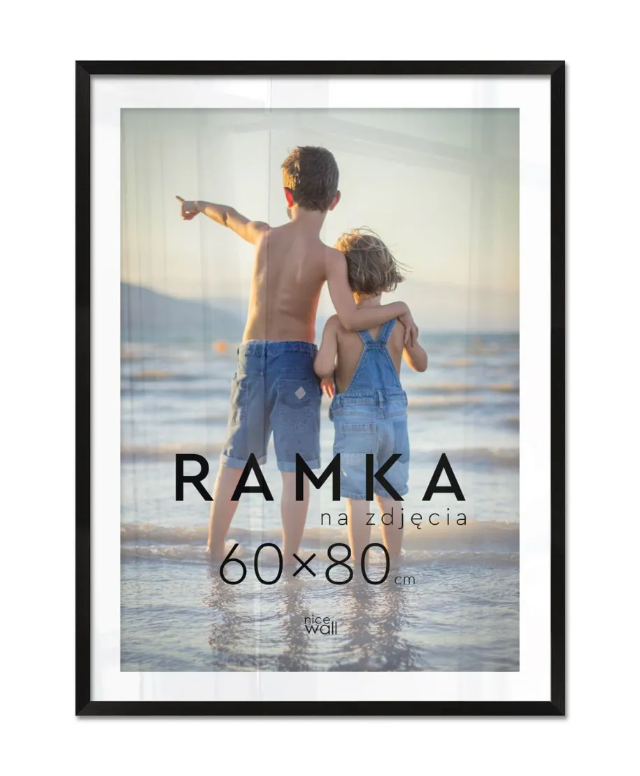 Ramka na zdjęcia 60x80 cm Czarna Eleganckie ramki do oprawy plakatów, zdjęć i rysunków. Wykonane zpłyty pilśniowej, polistyrenu i lekkiej, przejrzystej pleksy 1 mm. Ramę można powiesić w pionie lub poziomie. Każdy egzemplarz jest zafoliowany. Posiadającertyfikat FSC. Wyprodukowanew Polsce. Wymiary ramy: 60x80 cm. Wymiary profilu: front 1,5 cm, bok 1,3 cm,