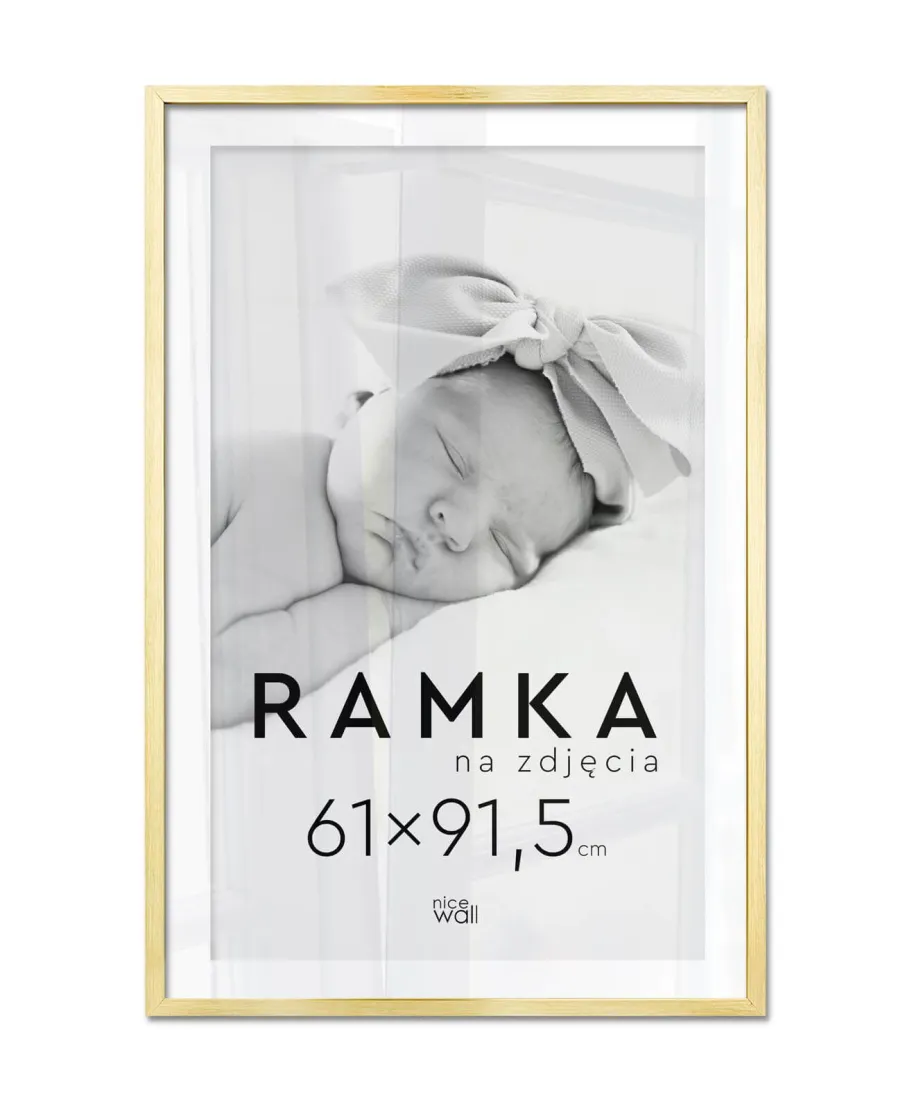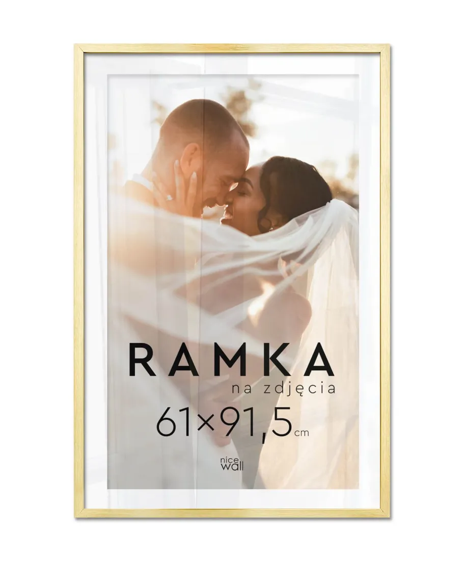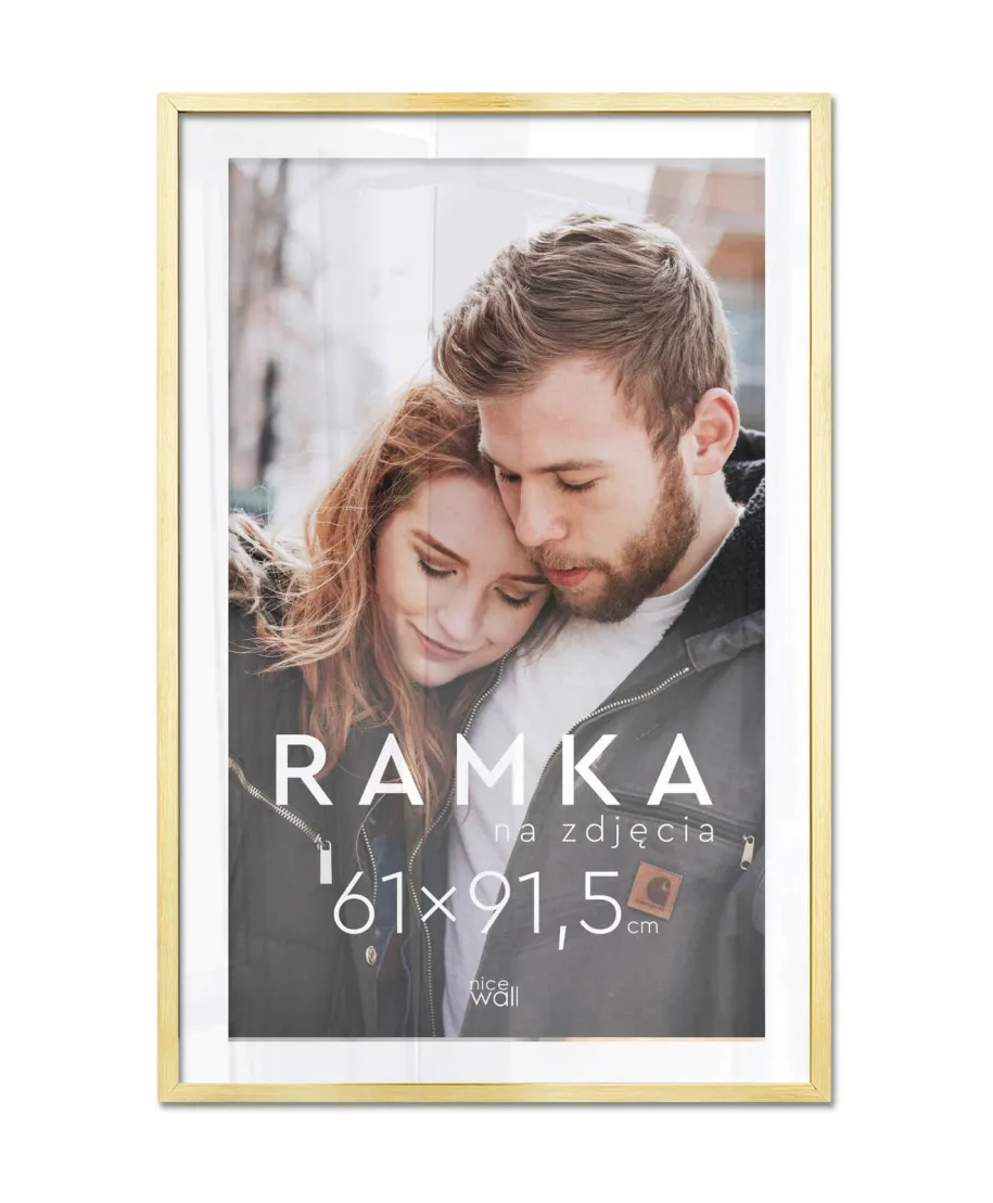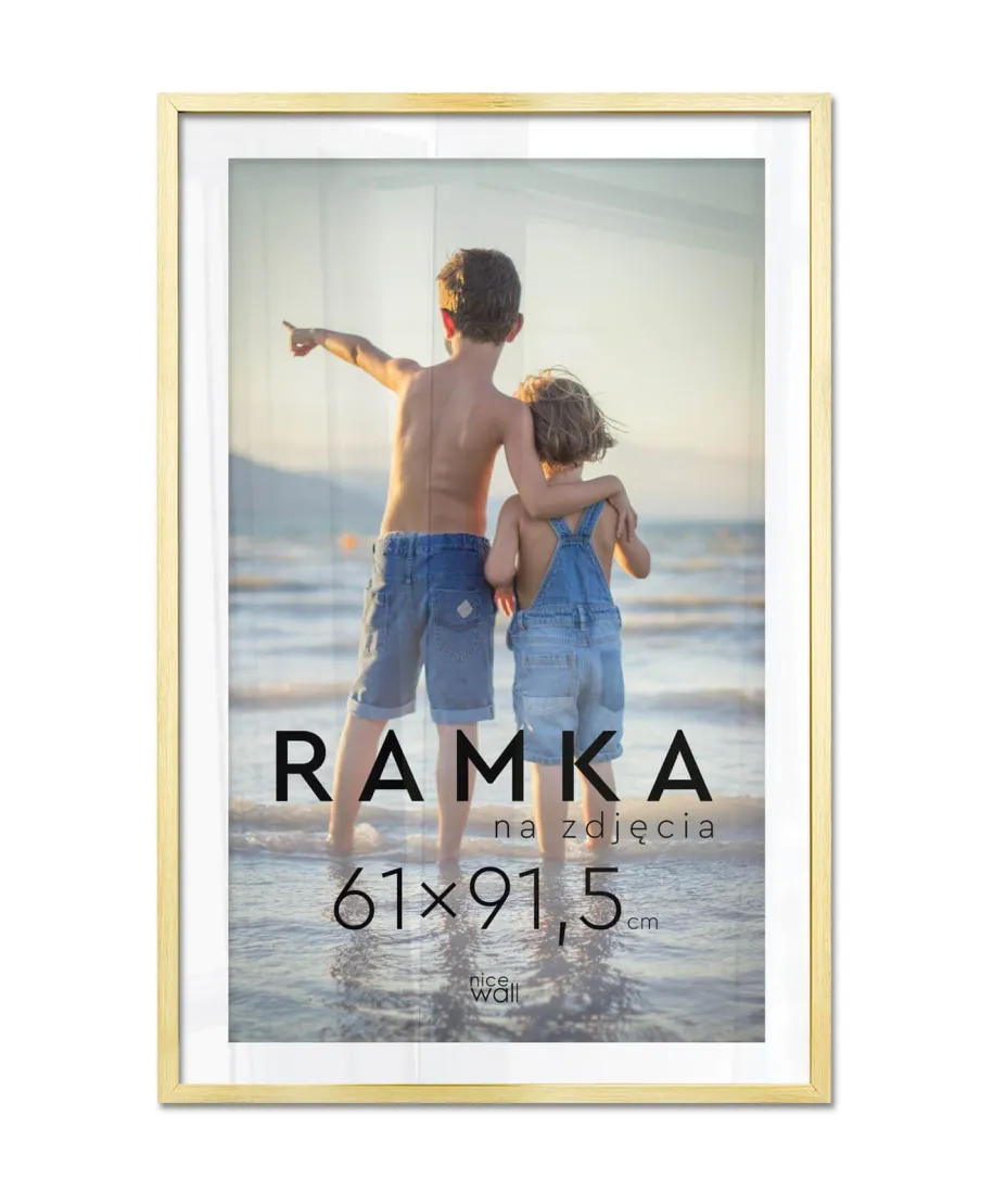 Ramka na zdjęcia 61x91,5 cm Złota Eleganckie ramki do oprawy plakatów, zdjęć i rysunków. Wykonane zpłyty pilśniowej, polistyrenu i lekkiej, przejrzystej pleksy 1 mm. Ramę można powiesić w pionie lub poziomie. Każdy egzemplarz jest zafoliowany. Posiadającertyfikat FSC. Wyprodukowanew Polsce. Wymiary ramy: 61x91,5 cm. Wymiary profilu: front 1,5 cm, bok 1,3 cm,