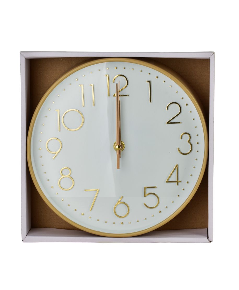 Zegar ścienny RAMSEY to okrągły element dekoracyjny o wymiarach 22 na 22 centymetry oraz głębokości 4 centymetrów, który łączy w sobie nowoczesną geometrię z lekkością wykonania. Został w całości stworzony z wysokiej jakości tworzywa sztucznego, co gwarantuje jego trwałość przy jednoczesnym zachowaniu niewielkiej wagi, ułatwiającej montaż na niemal każdej powierzchni. Jego forma opiera się na prostych liniach i wyraźnych krawędziach, dzięki czemu idealnie wpisuje się w minimalistyczne oraz współczesne aranżacje wnętrz. Powierzchnia obudowy charakteryzuje się gładkim wykończeniem, które podkreśla praktyczny charakter przedmiotu i ułatwia utrzymanie go w czystości. Front zegara chroni przejrzysta osłona, pod którą znajduje się czytelny cyferblat zaprojektowany z myślą o maksymalnej przejrzystości. Dzięki przemyślanym proporcjom i kompaktowym rozmiarom zegar RAMSEY stanowi subtelny, ale funkcjonalny akcent w kuchni, biurze czy przedpokoju, oferując precyzyjne odmierzanie czasu w estetycznej, plastikowej oprawie. Zapakowany jednostkowo w eco box. 22x22x4cm