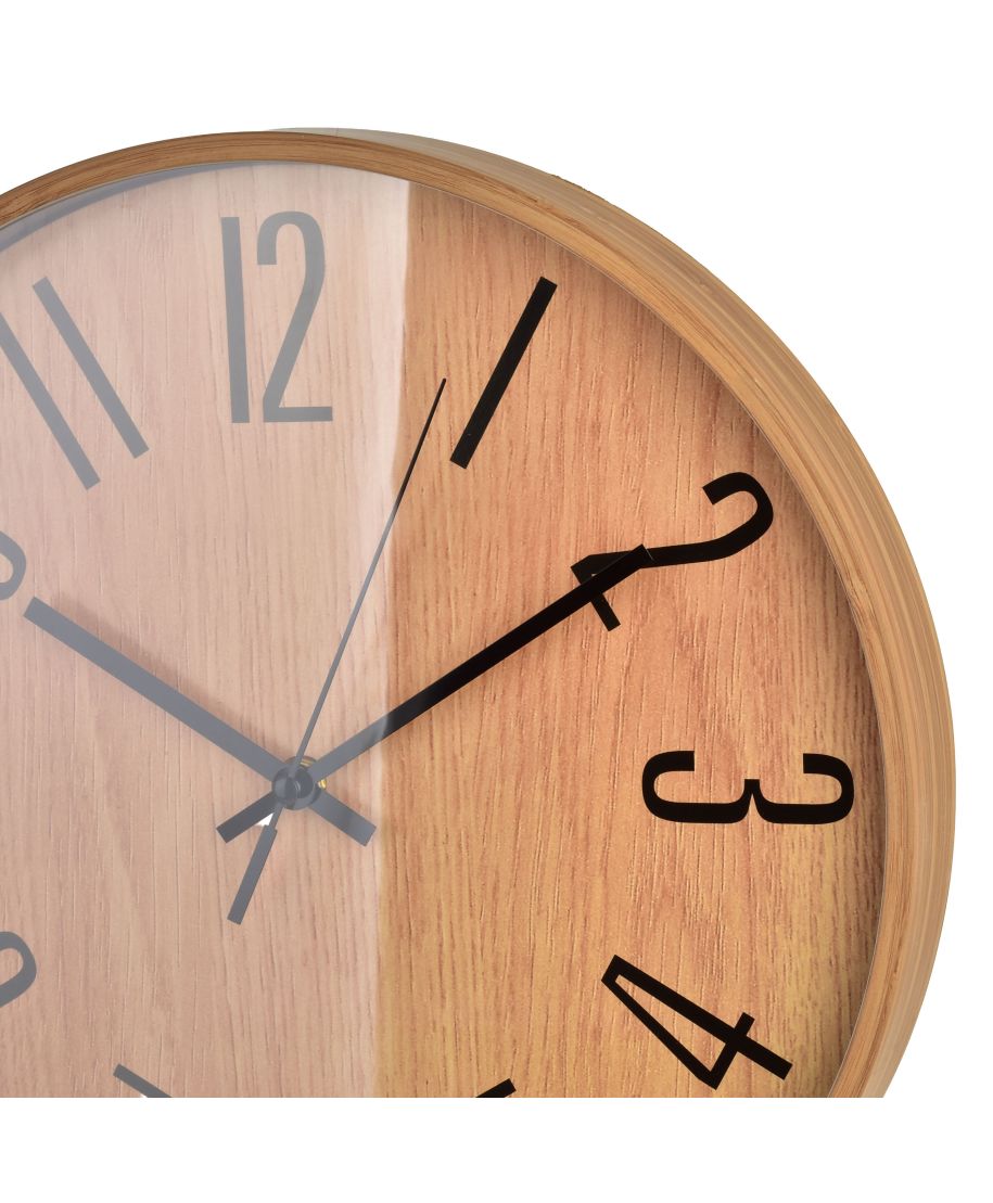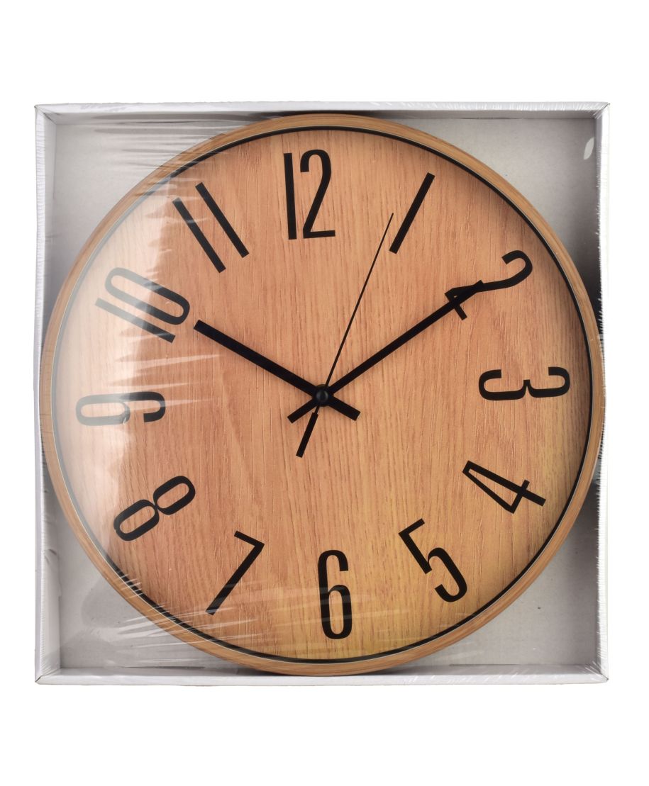 RAMSEY Zegar 34x34x4cm Elegancki design z imitacją drewna MondexZegar RAMSEY to idealne rozwiązanie dla osób poszukujących harmonijnego połączenia funkcjonalności i estetyki w swoim wnętrzu. Jego bezowo-brązowy kolor wraz z imitacją drewna wprowadza przytulny klimat, sprawiając, że pasuje do różnych aranżacji. Idealny do kuchni, salonu czy biura, nie tylko mierzy czas, ale również ozdabia przestrzeń.Kluczowe cechyOkrągły kształt o średnicy 34 cm, który doskonale komponuje się z każdą ścianą.Wykonanie z tworzywa sztucznego, które jest jednocześnie lekkie i trwałe.Bezowo-brązowy kolor z efektem imitacji drewna, który wprowadza naturalny urok do wnętrza.Duże, wyraźne cyfry w kolorze czarnym, które ułatwiają odczyt czasu z daleka.Cienka obudowa o grubości 4 cm, co nadaje mu elegancki, nowoczesny wygląd.Dlaczego warto wybrać kolekcję RAMSEYZegar RAMSEY wyróżnia się swoim minimalistycznym stylem, który doskonale wpasuje się w nowoczesne jak i klasyczne wnętrza. Dzięki swojej lekkości i naturalnemu wyglądowi, staje się nie tylko praktycznym, lecz również dekoracyjnym elementem każdego pomieszczenia. Jego design pozwala na swobodne zestawianie z innymi akcesoriami, tworząc spójną i estetyczną kompozycję.Zastosowanie i pielęgnacjaAby zachować estetyczny wygląd zegara, zaleca się regularne odkurzanie go wilgotną ściereczką. Unikać bezpośredniego narażenia na wilgoć i skrajne temperatury. Zegar działa na baterie, co ułatwia jego użytkowanie w różnych lokalizacjach.Dane techniczneWymiary 34x34x4cmMateriał tworzywo sztuczneKolor beżowo-brązowy imitacja drewna