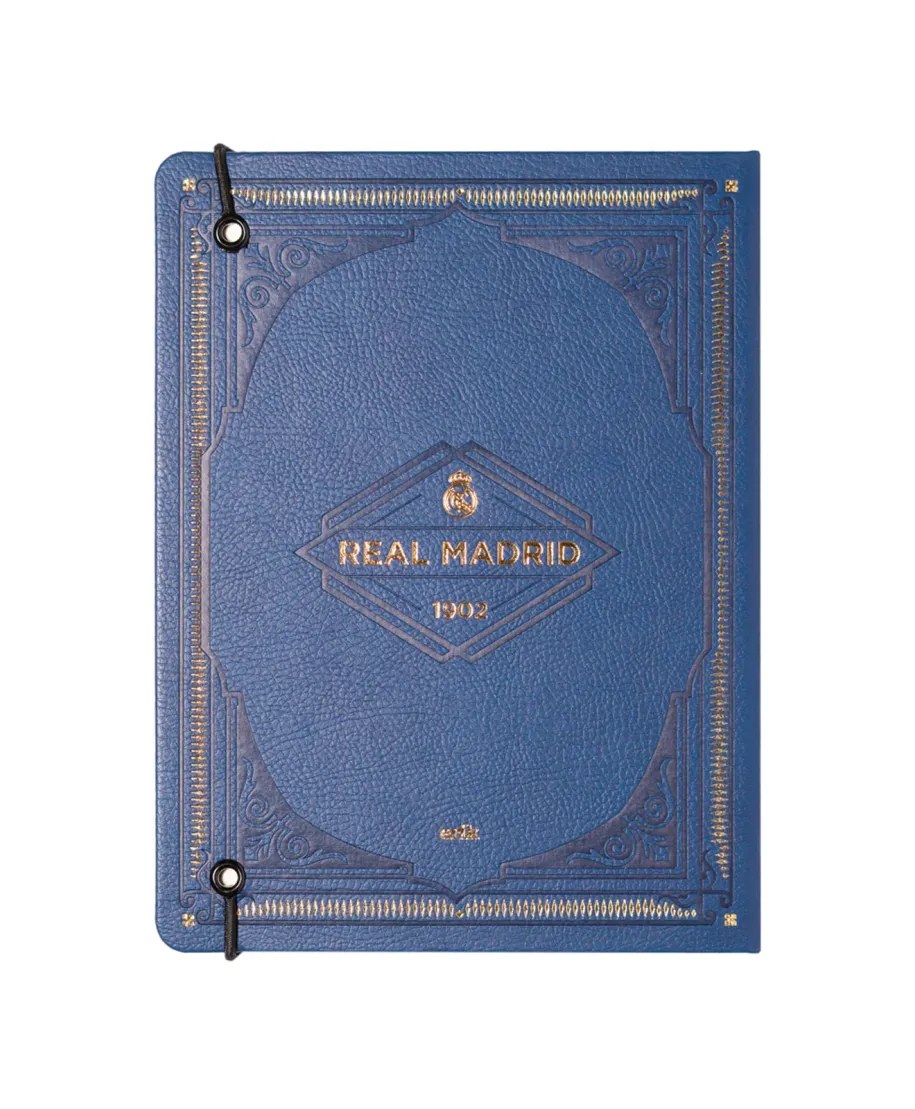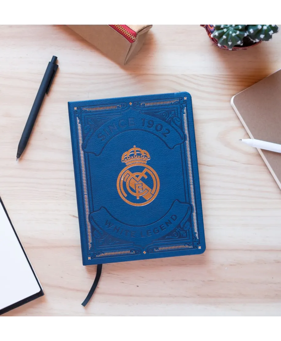 Real Madrid notes A5 Ekskluzywny notes A5 dla kibiców Realu Madryt. Twarda, tłoczona okładka z herbem i napisem White Legend, zamykany na gumkę. Doskonały do codziennych zapisków lub jako prezent dla fana piłki nożnej. Szczegóły techniczne: Format: A5 Okładka: twarda, tłoczona Motyw: Real Madrid Zamykanie: gumka Wnętrze: w linie Licencjonowany produkt Real Madrid. Must-have dla każdego kibica.