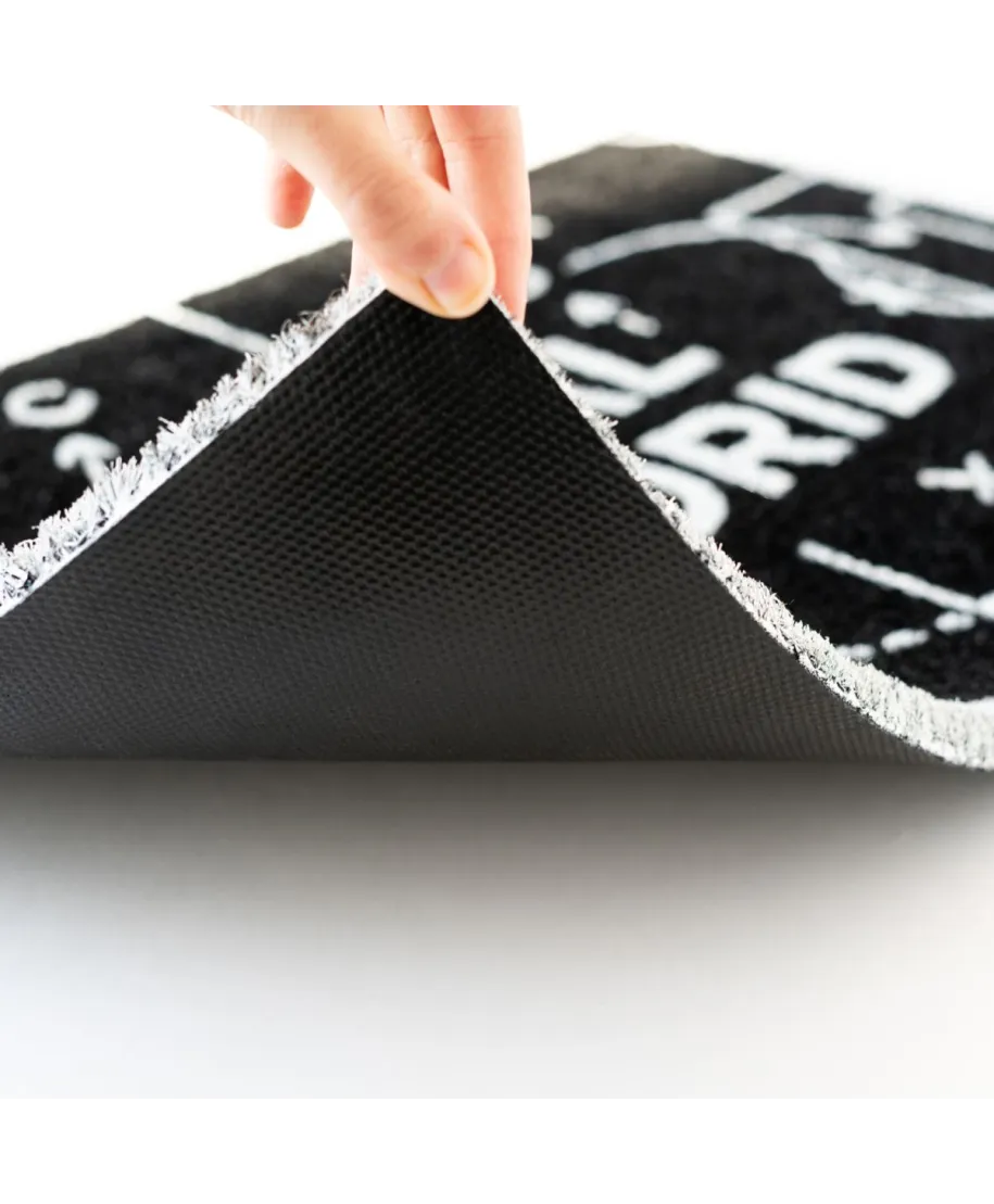 Real Madrid wycieraczka kibica Funkcjonalna wycieraczka z motywem Realu Madryt. Czarna powierzchnia z grafiką boiska i napisem REAL MADRID. Antypoślizgowa, odporna na ścieranie, doskonała do użytku domowego. Szczegóły techniczne: Motyw: Real Madrid boisko Kolor: czarny + biały nadruk Zastosowanie: wewnątrz/zewnątrz Oficjalny produkt licencjonowany Idealny prezent dla kibica piłki nożnej!