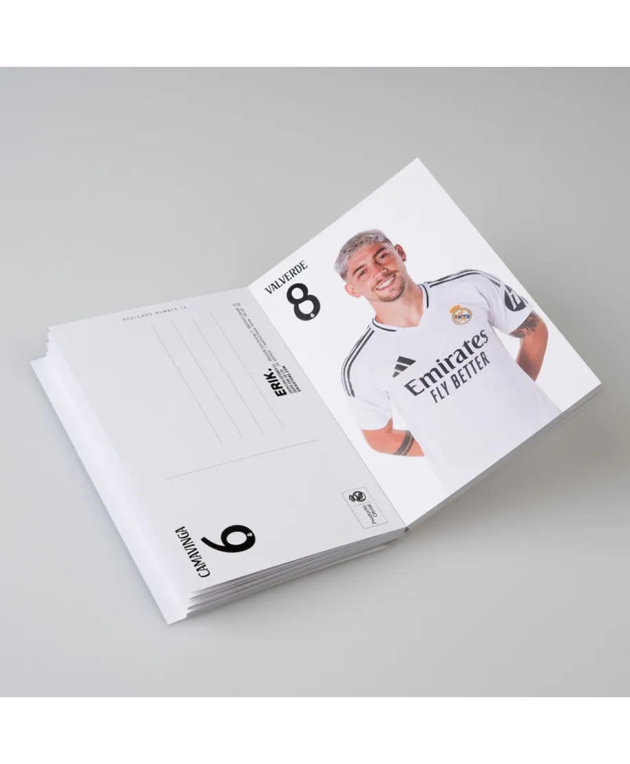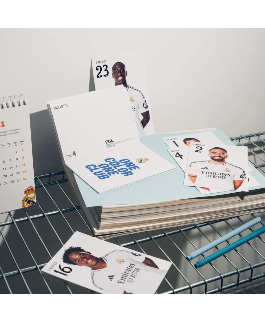 Real Madrid - zestaw pocztówek Zestaw 25 pocztówek Real Madrid to kolekcja unikalnych grafik dla fanów klubu. Każda pocztówka ma wysokiej jakości nadruk w pełnym kolorze i standardowy format 10,5 x 14,7 cm, co pozwala na ich wykorzystanie jako listu. Doskonały produkt dla kolekcjonerów oraz jako pamiątka dla kibiców. Wymiary: 10,5 x 14,7 cm Ilość: 25 różnych wzorów Materiał: Wysokiej jakości papier Oficjalna licencja Real Madrid Idealne do sprzedaży w sklepach z gadżetami piłkarskimi i pamiątkami klubowymi.