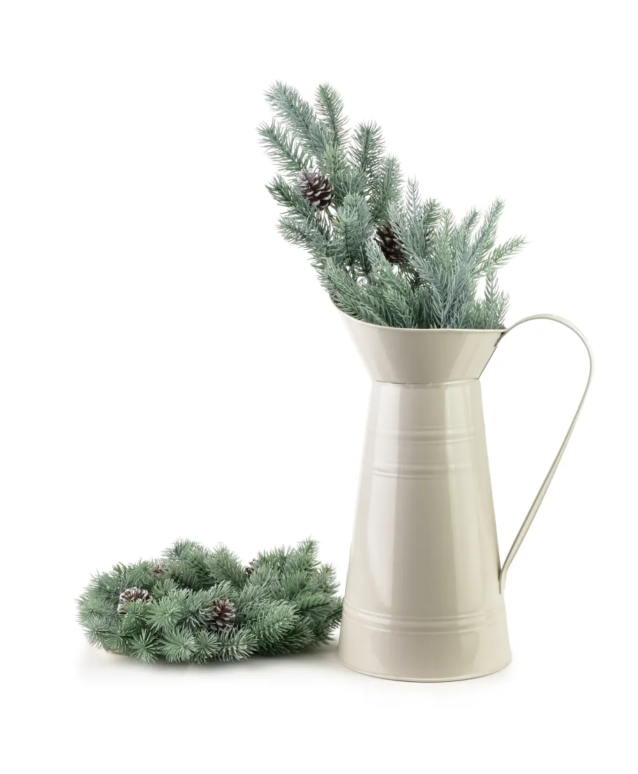 ROGER Wazon kanka 27 x 17 x h38,5 cm.Dekoracyjny wazon w formie klasycznej kanki, wykonany z metalu i wyposażony w duży, wygodny uchwyt. Jego oryginalny kształt nawiązuje do tradycyjnych naczyń, co nadaje mu niepowtarzalny, rustykalny charakter. Dzięki solidnej metalowej konstrukcji jest trwały i stabilny, a jednocześnie stanowi efektowny element wystroju wnętrza. Może być używany zarówno jako samodzielna dekoracja, jak i praktyczny wazon na kwiaty cięte lub suszone.