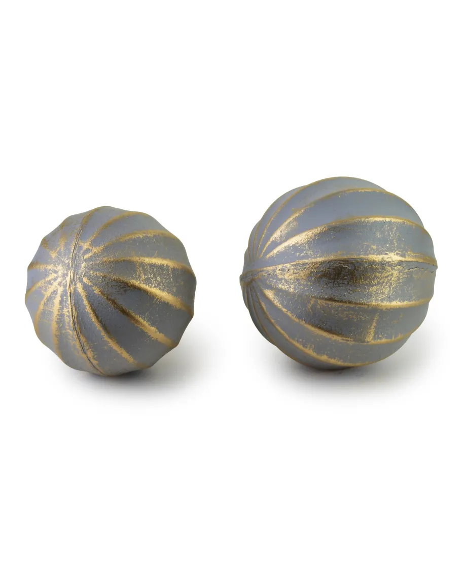 SAGGIO Kula dekoracyjna z MDF-u w kolorze szarym, wykończona w pionowe złote paski, to elegancki i nowoczesny element wystroju wnętrza. Jej forma łączy prostotę z geometrycznym rytmem, dzięki czemu może pasować zarówno do minimalistycznych, jak i bardziej klasycznych aranżacji. MDF, jako materiał, pozwala na precyzyjne frezowanie, co umożliwia uzyskanie delikatnych, równomiernych żłobień na powierzchni kuli, właśnie w formie pionowych pasów. Biała kolorystyka nadaje jej lekkości i sprawia, że dobrze odbija światło, przez co może rozjaśniać przestrzeń, w której się znajduje. Tego typu dekoracja może być umieszczona na półce, komodzie lub jako centralny akcent na stole.