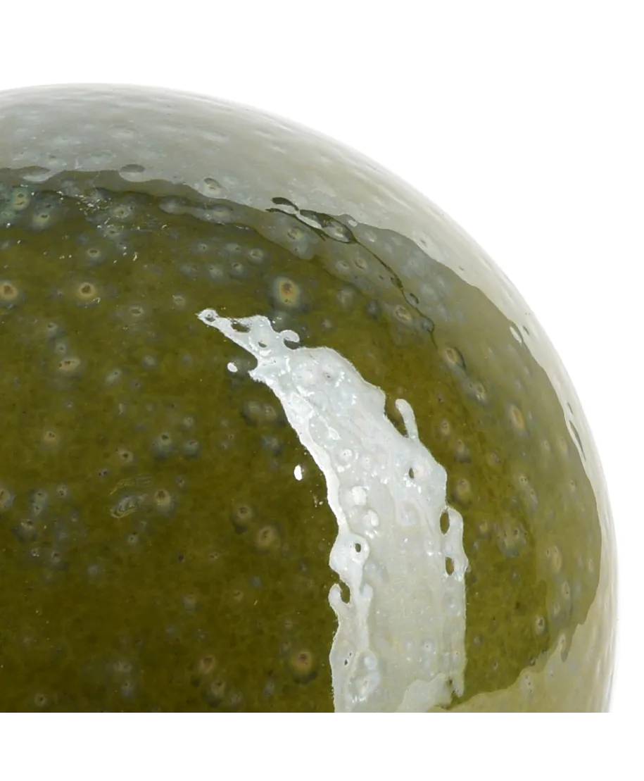 SAGGIO. Zielona kula, która ożywia przestrzeń. Wprowadź świeżość i harmonię do swojego wnętrza z dekoracyjną kulą SAGGIO. Jej elegancka forma i intensywny zielony kolor inspirowany naturą sprawiają, że staje się ona wyjątkowym akcentem aranżacyjnym. Idealnym zarówno do nowoczesnych, jak i klasycznych przestrzeni. Design inspirowany prostotą i równowagą. Kula o wymiarach 8x14,5x14,5 cm to perfekcyjne połączenie prostoty i estetyki. Jej gładka, błyszcząca powierzchnia subtelnie odbija światło, dodając wnętrzu głębi i przytulności. Świetnie komponuje się z innymi elementami dekoracyjnymi lub jako solowy akcent na półce, komodzie czy stoliku kawowym. Ceramika wysokiej jakości . trwałość i styl. Wykonana z solidnej ceramiki kula SAGGIO to dekoracja na lata. Jej trwałe wykończenie gwarantuje odporność na zarysowania i zachowanie intensywnego koloru przez długi czas.Każda kula zapakowana jest w brązowy karton jednostkowy, co czyni ją idealnym pomysłem na prezent,stylowym, gotowym do wręczenia i praktycznym.wymiary: 8x14,5x14,5cmwaga: 600g